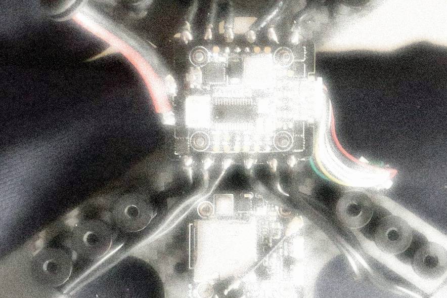 J'ai branché une batterie sur le drone, appuyé sur le bouton du récepteur pour avoir une lumière fixe bleue