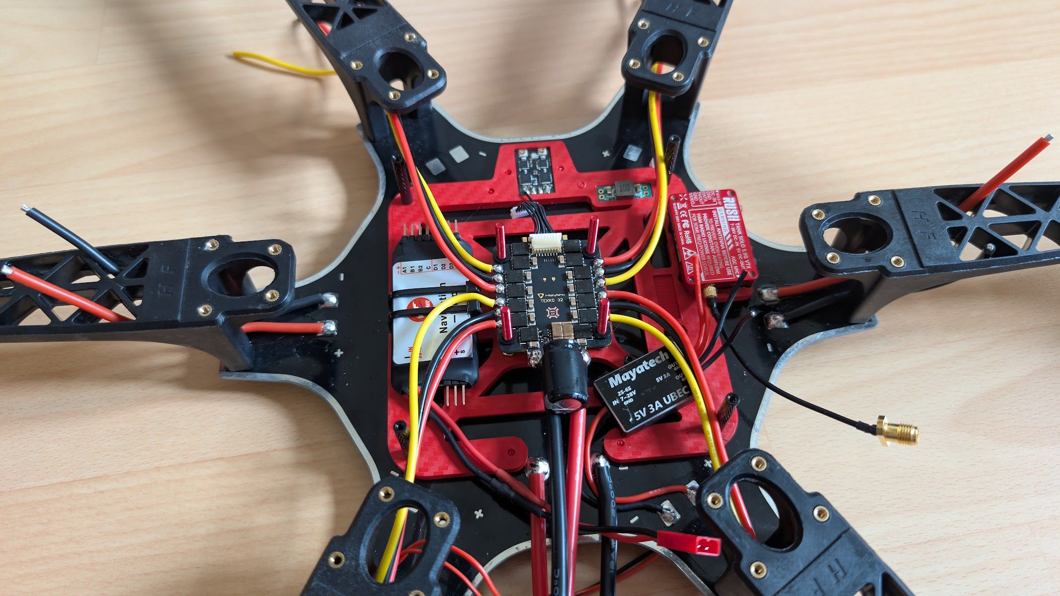 Voilà, assemblage terminé ! 1291 grammes quand même avec lipo 3300 mah et GoPro. Plus qu'à attendre quelques beaux jours 🥶