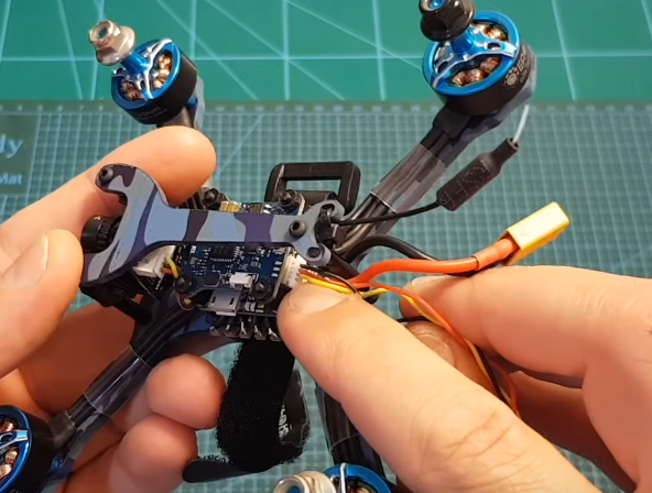 Stase Posté(e) Avril 4, 2020 Auteur Signaler Posté(e) Avril 4, 2020 Soudure pas trÚs propres mais faites. J'ai allumé le drone pour la premiÚre fois, et le récepteur a réagit (bleu constant et rouge clignotant). J'ai donc tout éteint, lis la QX7 en mode binding, puis rallumé en tenant le bouton allumé, et là , toujours bleu + rouge clignotant mais aussi vert fixe. Le binding semble donc avoir fonctionné. Reste plus qu'à passé par Betaflight et on verra bien ! 2