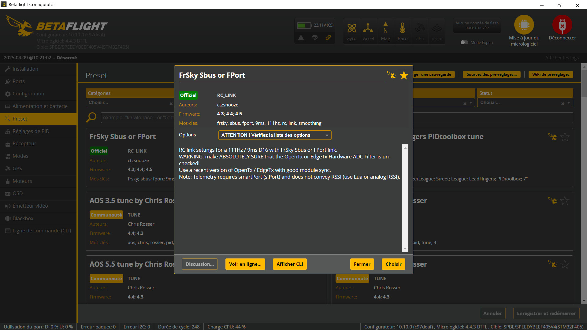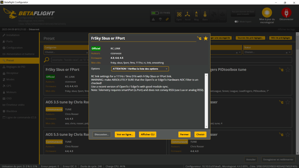 Avant tout il vous faut mettre à jour le configurateur Bétaflight  : https://github.com/betaflight/betaflight-configurator/releases