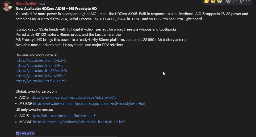 Je me demandais pourquoi cette marque que j'aime bcp n'était pas rentré dans la danse des vtx HD..... Il ferait mieux de faire un partenariat avec WS ou DJI mais bon c'est déjà bien qu'il se bouge.