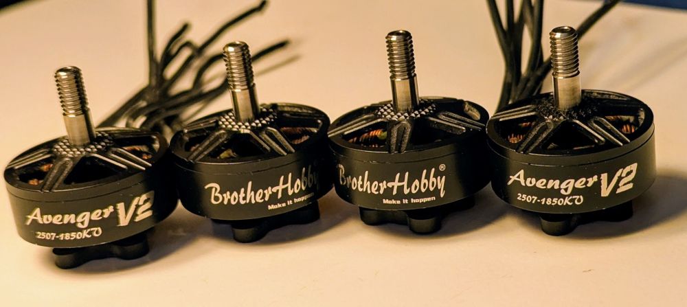 Feisar Posté(e) Février 22 Signaler Posté(e) Février 22 (modifié) Hello Suite à la dissection complète de mon 6’’, je mets en vente mes 6 moteurs 6’’ BrotherHobby Avenger V2 2507 (1850kv) pour 4S à 6S. Achetés neufs 25€ l’unité. 4 moteurs sont d’occasion mais en parfait état 2 moteurs sont neufs (spare) jamais utilisés (complets avec visserie et écrou M5 nylstop d’origine) Excellents moteurs dont la réputation n’est plus à faire, et je confirme car jamais eu le moindre problème avec. Idéal cruise/LR mais ont servi davantage a du freestyle sans broncher. Prix : il y en a pour plus de 150€ au total, j'en souhaite pour le lot complet des 6 moteurs neufs et occasion : 80€ Envoi possible en Mondial Relais ou Colissimo (à votre convenance) Photos :  Modifié (le) Septembre 23 par Feisar vendu