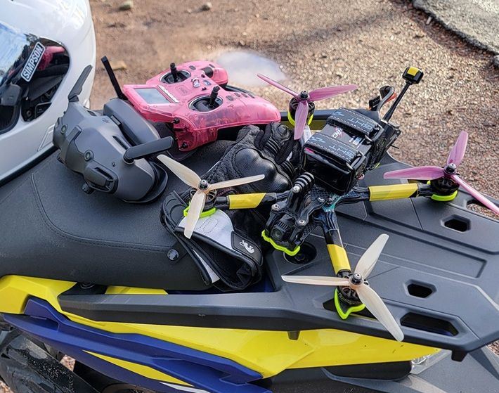 sbou06 Posté(e) Avril 6 Signaler Posté(e) Avril 6 Salut à tous! Je fais du FPV depuis maintenant environ un an, ça m'intéressait depuis déjà pas mal de temps et je me disais que ce serait moins cher de fracasser des drones que des motos (pas tant que ça au final ). J'ai accroché direct à la fois sur la partie pilotage, tenter de nouveau tricks, prendre des risques etc, et la partie technique, assemblage, réparations, choix de pièces (sortir la carte bancaire un peu moins ). J'ai commencé (après quelques heures de Tryp FPV) sur un mob 6 2024 histoire de me faire la main, puis je me suis aussi pris un nazgul XL5 en août dernier. J'aurais préféré faire moi même mes 1ers builds, mais au final c'était bien plus rentable de les prendre en BNF pour des drones "basiques" comme ceux là. Niveau matériel, j'ai actuellement: - une Radiomaster Zorro - en goggles, j'avais commencé avec une copie no-name d'EV800D, puis je suis passé sur une paire de goggles V2 d'occasion, sur lesquelles j'ai rajouté un eachine pro58 pour les utiliser avec mes drones en analogique, avec comme but d'upgrader mon nazgul en O3 à l'époque. Sauf qu'entre temps la O4 est arrivée, et j'ai du coup décidé de sauter le pas et de me prendre les goggles 3 (et de basculer le nazgul en O4 lite). Pour l'instant je m'entraine principalement sur des spots comme des terrains vagues ou des parkings, j'aimerais bien me mettre au bando mais j'ai pas trouvé des masses de spots autour de chez moi qui craignent pas trop niveau accès. Actuellement, c'est ma fiancée qui a l'immense honneur de m'accompagner dans des endroits perdus pour me regarder voler, mais je dois un peu arrêter d'abuser de sa patience S'il y a des gens du coin qui veulent se faire des sessions ce serait volontiers, ça serait plus fun et puis c'est aussi certainement mieux pour progresser! A plus! 2