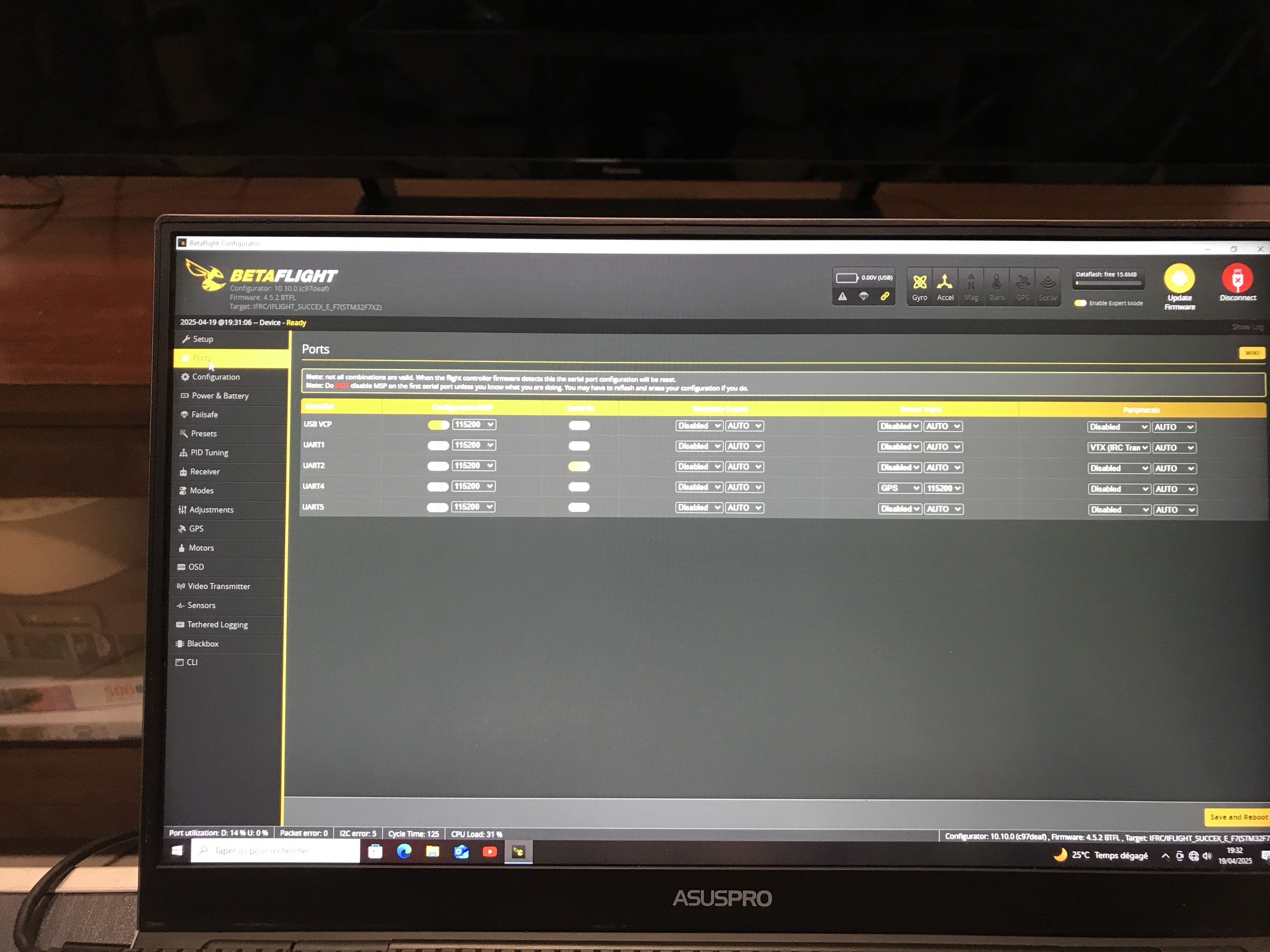 reunionisland Posté(e) Avril 25 Auteur Signaler Posté(e) Avril 25 (modifié) Merci de vos retours, Alors avec vos deux commentaires, je ne vais nul part. root or not root ahahahah VTX - UART1 MSP+DISPLAY PORT - - - - - J'ai l'image on a volé avec mais pas les infos OSD (batterie etc) Device ready false RX - UART2 - OK GPS - UART4 115200 - - - - Pas d'icône et plus la LED J'ai configuré le gps comme dans les tutos YT mais j'ai une valeur false 3D fix Goggle V2 Mes firmware goggle V2 et Caddx sont à jours. Je vole aussi avec un protek 35 beta flight 4.2.3 et tout fonctionne. Je voulais passer en 4.5, .... Modifié (le) Avril 25 par reunionisland