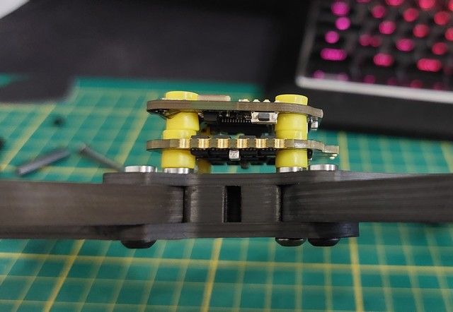 Silverglade Posté(e) Avril 23 Auteur Signaler Posté(e) Avril 23 Merci pour toutes les réponses, c'est commandé et reçu ^^ Motivé j'ai commencé le montage. Et les problèmes sont vites arrivés. Il y a un sens de bras qui les rapproches ou les éloignes du chassis, par logique je suppose qu'il faut les éloigner sinon les hélices tapent dedans ou dans la batterie donc j'ai monté "loin". Ca ressemble a ce que j'ai trouvé sur le net en vue de dessus, si eux l'ont monté correctement 2e problème, la stack a des silicones m2, mon chassi est en m3 : ENFER pour remplacer ces trucs !! J'ai cru accrocher plusieurs fois des composants avec mes ongles ! Et une fois fait... 3e problème : vis fournies trop courtes ! Partout elles suffisent, moi non. C'est l'histoire de ma vie. Dites moi que j'ai mal fait un truc et que j'ai pas besoin d'aller m'exciter sur amazon ? Il y a qu'une vis de 25 (les plus longues que j'ai) en bas a droite, elle dépasse pas...