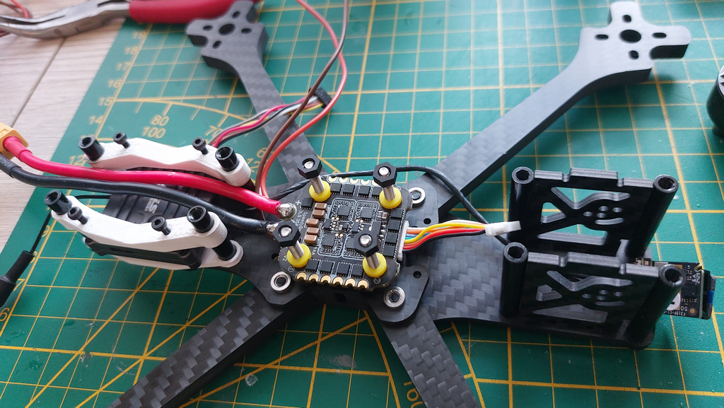 Silverglade Posté(e) Avril 23 Auteur Signaler Posté(e) Avril 23 (modifié) il y a une heure, Motard Geek a dit : La visserie ça dépend vraiment du châssis et de la stack et si t'as pas de gummies moins épaisses alors va falloir en acheter (des vis plus longues) Bon il ressemble à ça c'est ok merci. Pas le même chassi par contre, y'a pas de doc v5 ? Par contre ouai, j'ai commandé un pack de vis m3 sur amazon, j'aurais largement ce qu'il faut. En attendant je me suis dit que j'allais regardé le vtx... Nouveau problème. J'avoue que ça commence un peu à me souler d'autant que là il a l'air costaud à régler. J'ai opté pour une DJI 04 (lite) finalement, avec la naïveté de croire que c'était adapté en regardant un montage sur youtube. C'est pas du tout adapté, ou un truc m'échappe, je pense que la photo parle d'elle même : Voilà voilà. Je vais arrêter de faire confiance aveugle Naturellement, une fois le stack en place il y aura pas la place pour un vtx au dessus ou a coté, pas les trous non plus a l'avant, et même ceux de l'arrière ne correspondent pas du tout ils font 20x20 alors que le vtx fait 25x25 Je suppose (bien je pense) qu'il est hors de question de mettre un stack derrière ? J'ai pas l'impression mais le câble noir peut être remplacé ? J'ai trouvé un "Câble Coaxial Pour Caméra DJI O4" 13cm jusqu'à 25cm, mais les prises ont l'air tellement fragiles ! Idem pour la caméra, le boitié fourni n'est pas bon pour l'avant, il faut l'adaptateur Caméra DJI O4 - AxisFlying 20mm ? Je me sens tellement nul Modifié (le) Avril 23 par Silverglade