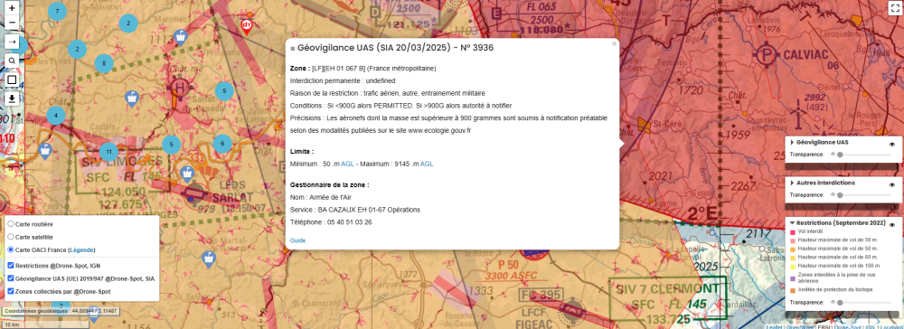 Si je comprends bien selon IGN c'est interdit de vol mais selon SIA c'est autorisé jusqu'à 50m, bon je suis juste à la limite.