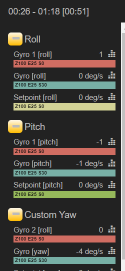 Jerome Posté(e) Mai 28 Signaler Posté(e) Mai 28 Il y a 4 heures, spid99 a dit : modification du "ralentie dynamique" activé à 34 (La vidéo de @Jerome ce matin) En 3" tu dois pouvoir pousser un peu plus haut genre 40-45. A tester ce qui te va le mieux. Il y a 4 heures, spid99 a dit : Une petite question, pourquoi sur la BB j'ai un "custom Yaw" en gyros 2 ? Pensez vous que je doive le couper ? (en plus il me parait vide ..) C'est comme ça que tu as configurer ton espace de travail, effectivement ca sert à rien si tu utilises le gyro 1 Tu peux récup celui que j'avais partagé dans la vidéo sur la BB. 1