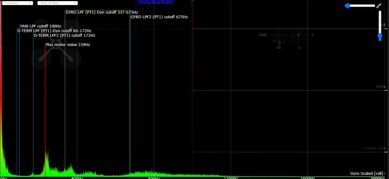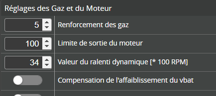 spid99 Posté(e) Mai 28 Auteur Signaler Posté(e) Mai 28 (modifié) SAlut, modification du "ralentie dynamique" activé à 34 (La vidéo de @Jerome ce matin) Enlevé le "Motor Stop" Remplacé le nombre d'aimants, 12 au lieu des 14 (oups j'avais zappé) Le ressentie est bien, est-ce du placébo ? Mon niveau ne permet pas vraiment de juger, mais j'ai l'impression que c'est mieux, à voir dans le temps, je n'ai fait que deux courtes batteries. Par contre la BB me semble plus "bruitée" après passage des filtres c'est bon. Une petite question, pourquoi sur la BB j'ai un "custom Yaw" en gyros 2 ? Pensez vous que je doive le couper ? (en plus il me parait vide ..) btfl_001.bbl Modifié (le) Mai 28 par spid99
