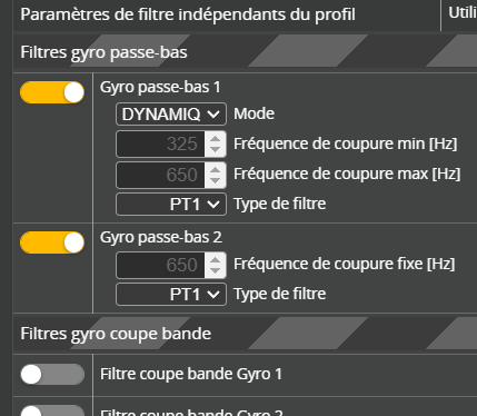 spid99 Posté(e) Mai 29 Auteur Signaler Posté(e) Mai 29 Il y a 7 heures, Jerome a dit : effectivement ca sert à rien si tu utilises le gyro 1 Je peux désactiver le filtre passe bas du Gyro2 ? Il me semble l'avoir déjà fait sur certains drones ..