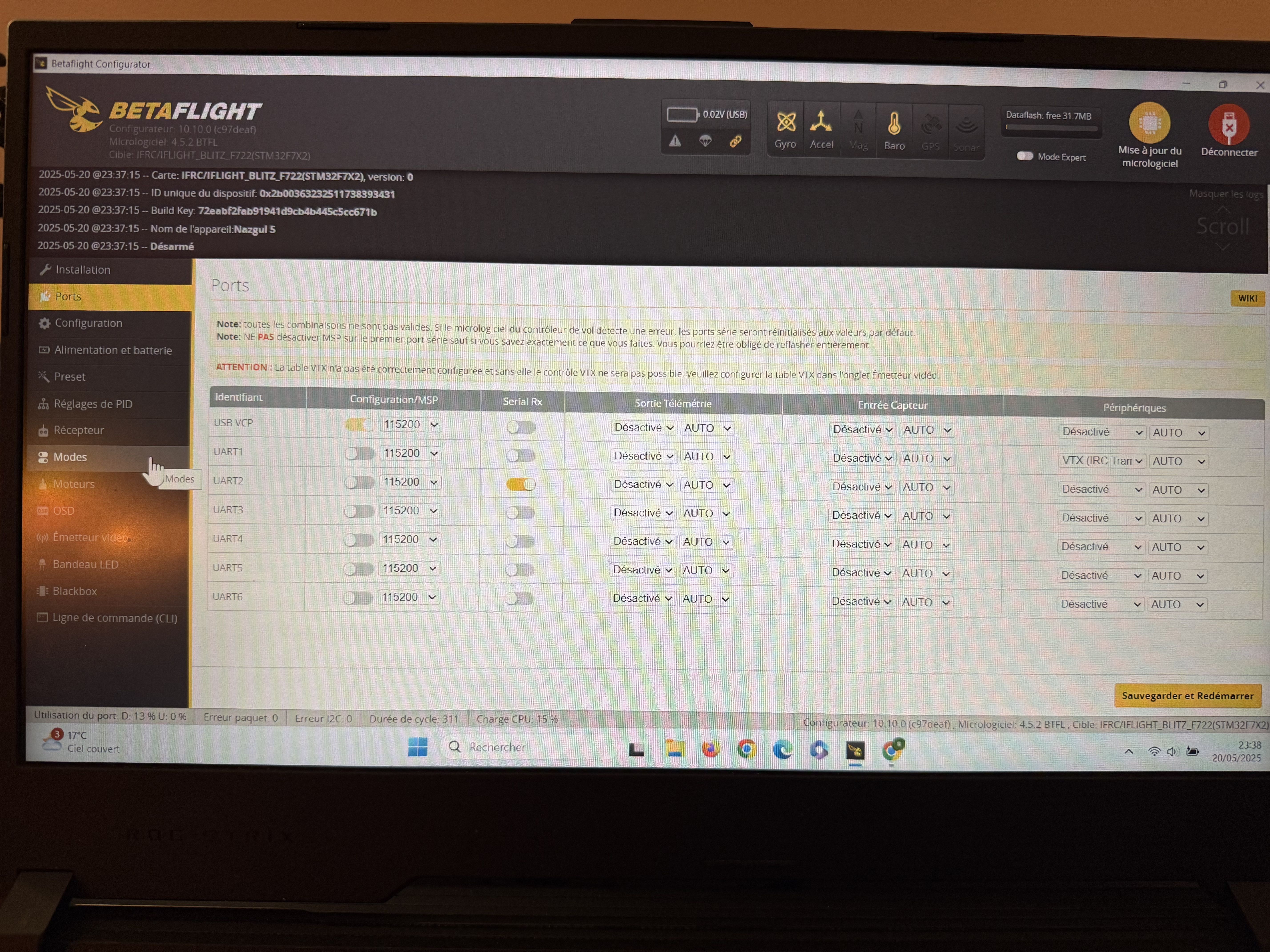 Sebooney Posté(e) Mai 14 Auteur Signaler Posté(e) Mai 14 Est-ce que ça pourrait venir d’un mauvais uart dans betaflight ?
