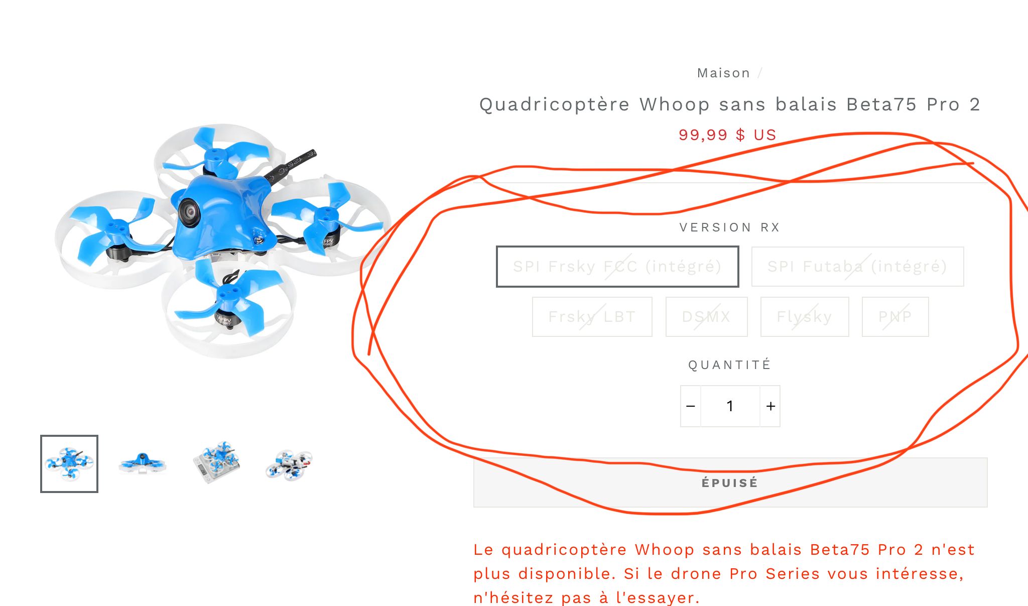 kil241 Posté(e) Mai 17 Auteur Signaler Posté(e) Mai 17 Salut @spid99 J'ai flashé ce que tu m'as dis de faire mais je ne peux toujours pas choisir mes boutons dans l'onglet modes Je viens de re-regarder ton message et j'ai refait le flash il me met ça avec les mêmes options que toi Salut @Attafr Je l'ai acheté d'occasion sur le bon coin et je l'ai reçu en début de semaine Voila le liens de la page betafpv du drone https://betafpv.com/products/beta75-pro-2-brushless-whoop-quadcopter?variant=13081727303724