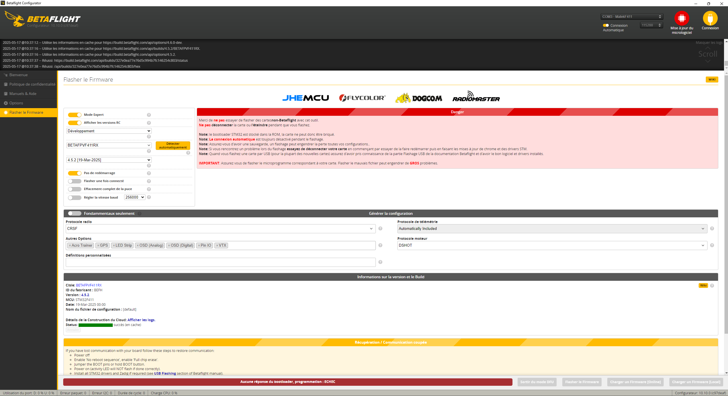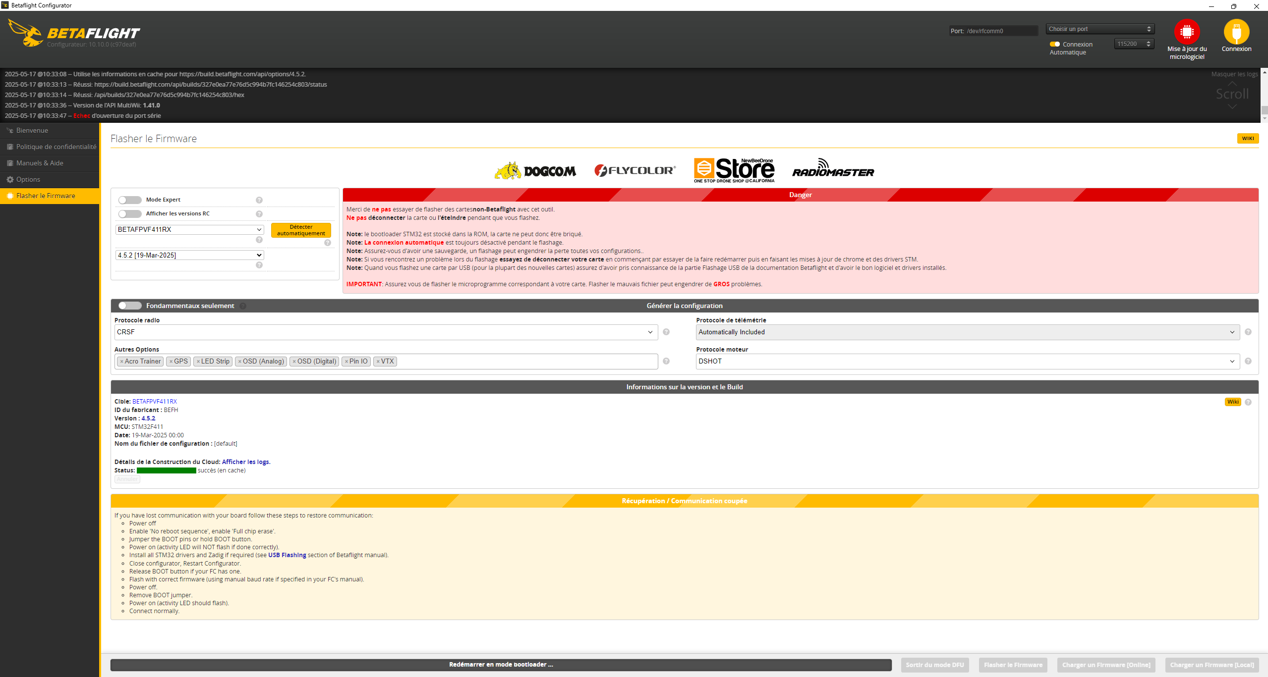 Motard Geek Posté(e) Mai 14 Signaler Posté(e) Mai 14 Ca ressemble à une version de configurateur pas compatible avec Betaflight