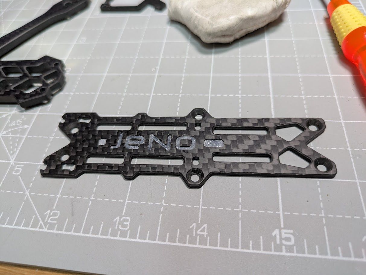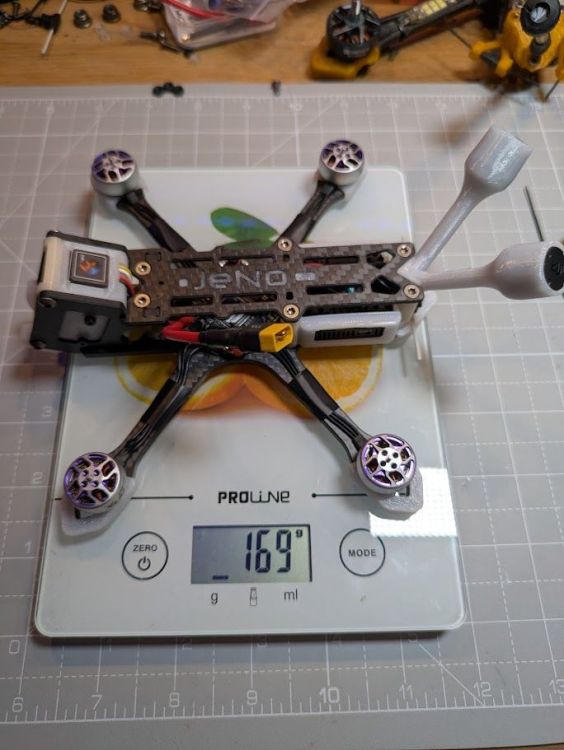 Jerome Posté(e) Mai 19 Signaler Posté(e) Mai 19 (modifié) Topic Attachments Salut tout le monde, Je m'étais promis de ne plus me faire chier à faire un build trop "léché", parce qu'à chaque fois le constat est le même : la maintenance est super chiante Mais exceptionnellement, et parce que cette machine n'est pas destinée à subir trop de maintenance, j'ai ignoré cette promesse Le besoin : un drone orienté cinématique et mid range pour un usage à la montagne. Ca, j'ai déjà avec mon 6" et sa GoPro. Mais c'est lourd et bruyant. Je voulais exactement l'inverse avec une qualité qui reste décente. Le choix s'est donc orienté vers un 3.5" (un des rares formats que je n'ai jamais fait), en DJI O4 Pro évidemment. J'aurais pu partir direct sur un JeNo 3.5", mais ce qui est beau avec l'Open Source, c'est qu'il est super facile de faire des petites modifs pour se faire plaisir. Ca reste donc à 95% un JeNo officiel, mais avec quelques changements : Allongement de l'arrière du bus de 2mm pour avoir plus de confort pour intégrer le O4 Pro Suppression des perçages de stack arrière qui pouvaient engendrer des points faibles (ca reste optionnel) Suppression des angles de stack au niveau du châssis au profit d'un design plus arrondi, plus moderne, inspiré du JeNo Fit de @nochamo Optimisation des motifs sur l'arrière de la bottom Renfort de la jonction bras arrière/bus pour plus de solidité et de finesse Qques nouveaux TPU tout en conservant la compatibilité avec tous les TPU officiels JeNo 3-3.5" Une image pour illustrer tout ça : Le JeNo 3 en bando a déjà fait ses preuves, et même si je le destine à du Mid Range/Ciné, il serait aussi tout à fait viable en bando grâce à ses différents renforts. Il vient avec son lot de TPU sur-mesure : Support GPS custom avec saisie au niveau de la top Cage TPU O4 Pro Chapeau condo pour éviter les shorts Nouveau bumper avant A noter que l'installation du RX se fera enfin à l'arrière grâce au gain de place au dessus du O4 Pro. Il a aussi été buildé dans un esprit de fiabilité, vu l'usage auquel il se destine : Aucun connecteur, full soudure, même sur le O4 Pro GPS Chapeau TPU sur le condo : en général je me contente de silicone liquide ou liquid tape, là c'est plus propre et plus sûr Pschitt de spay hydrophobe C'était un build quand même assez délicat, avec 12 soudures dans le même coin de la FC pour RX + GPS + O4 Pro. Si vous regardez les photos, vous verrez que le gyro n'est pas hyper bien placé, il se trouve dû côté de tous mes fils, donc il faut faire attention à le garder bien dégagé. Mais le résultat est très clean et je suis toujours aussi satisfait de cette FC que j'utilise déjà dans mes 2 JeNo Pocket, le rapport qualité prix est assez imbattable (JHEMCU GHF722AIO-HD 40A). Seul petit bémol, au premier branchement, mes moteurs ne tournaient pas, ils tremblaient. Les ESCs était mal configurés en sortie de boite ! Le Minimum Startup Power était trop bas... c'est pas méchant mais j'ai eu un moment de doute vu que ça n'a pas été le cas avec mes 2 autres FC. Bref, si ça vous arrive, checkez dans Bluejay que vous être autour de 1025-1035. Les pads de soudre sur la tranche de la FC, qui pouvaient être déstabilisants au départ s'avère de plus en plus agréables à utiliser et aident à garder une FC bien dégagée. Je suis assez content de la fixation du O4Pro, c'est super propre (en général je le colle au double face + rislan et basta)... Mais ça a été un véritable enfer pour trouver un compromis à la fois propre et maintenable. C'est un truc que j'avais sous-estimé avant d'y être vraiment confronté. On est content d'avoir le connecteur FC du bon côté, c'est vrai ! Mais par contre, maintenant, pour pouvoir changer la caméra ou remplacer une antenne, il faut obligatoirement retirer le couvercle du O4 Pro... mais pas celui du dessus, celui du dessous ! Et à partir du moment où on veut utiliser une cage TPU pour le fixer (j'étais tout content de mon premier proto de cage...), on comprend vite pourquoi c'est la merde : Il faut passer les câbles coax et antennes au travers de la cage TPU On ne peut pas refermer le couvercle du O4 Pro dans la cage Il faut donc faire passer les câbles dans le support TPU, mais le fermer à l'extérieur de la cage TPU et ensuite tout rentrer dans la cage aux forceps. Bref, ni satisfaisant, ni pratique pour la maintenance. A force de brainstormer avec @nochamo, on a finit par trouver un compromis plutôt pas mal Après coup, ca mériterait juste une petite mise à jour pour ajouter une languette anti-eject sur la fente de la carte SD. Au passage, pour visser les moteurs avec les protections TPU, idéalement il faut des vis de 7mm. Si qqun a un plan pour des vis de 7mm, idéalement en titane et torx, je suis intéressé. Là j'ai passer à la Dremel 16 vis de 8mm, bien relou ^^ En parlant des moteurs, j'ai opté pour des 1404 4500KV, tout simplement parce que c'est ce que j'ai sur mes JeNo 3" et ça me permet de mutualiser le spare. Je les bride à 93% pour tomber sur un équivalent 4200KV. A noter que ça nous a permis d'identifier 2 soucis dans les TPU actuels du JeNo 3" en O4 Pro. Les corrections sont sur ce nouveau build, faut qu'on reporte les fichiers sur la page officielle : Support antenne O4 Pro corrigé pour les JeNo 3", celle qu'on avait mis à dispo ne permettait pas de passer le connecteur µFL, merci @nochamo pour la réactivité et le nouveau design ! Correction des TPU de cam plate à point fixe pour la caméra du O4 Pro Je l'utilise soit avec mes lipos de JeNo 3" (Dogcom 4S 560 mAh) pour du free tranquille. Mes lipos sont un peu fatiguées, ça me laisse une autonomie passable de 2 min 30. Le sweet spot ce sont les Tattu HV 4S 750mah qui sont en longueur et s'adaptent parfaitement au châssis ! A la montagne j'utiliserai donc plutôt des 750 ou 850 mAh. Pour finir sur le feeling : pour du freestyle sur des spots petits ou moyens, je