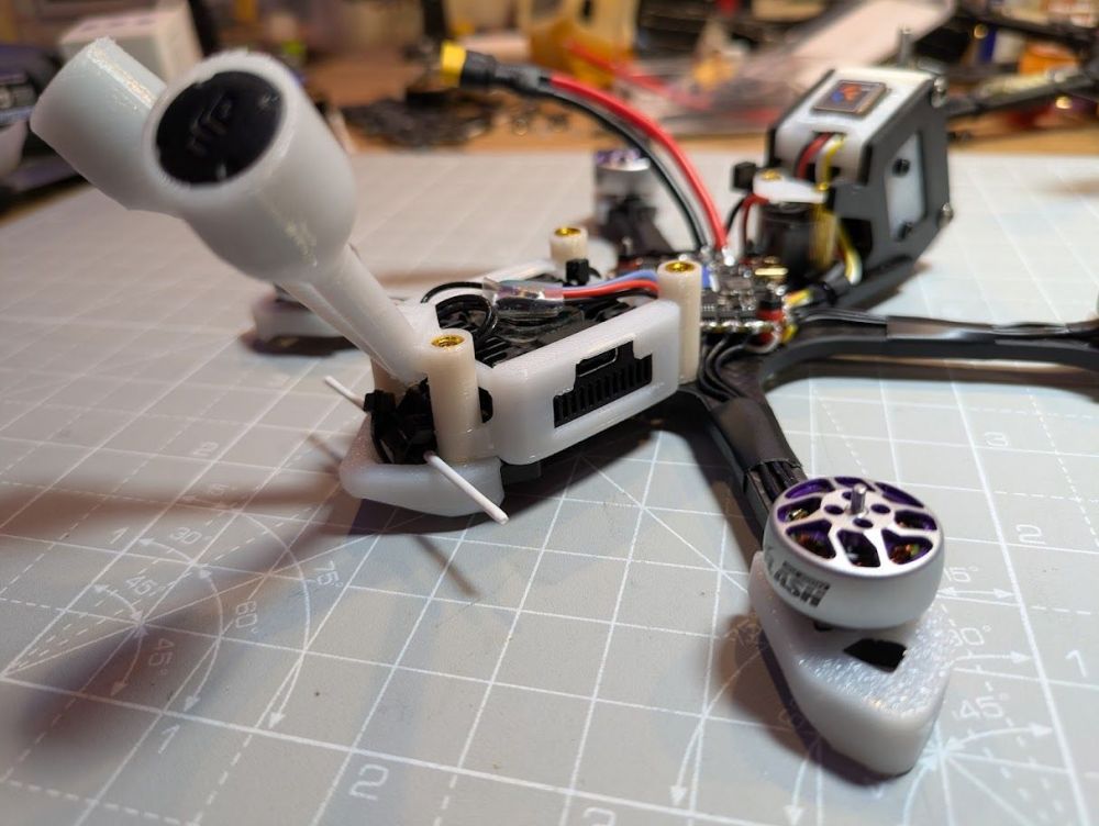 Jerome Posté(e) Mai 20 Auteur Signaler Posté(e) Mai 20 Il y a 3 heures, ArnoTlse a dit : Superbe machine. Merci ! Il y a 3 heures, ArnoTlse a dit : Le choix du 3.5" pour du mid range/ciné, c'est lié au bras de levier et à la surface soufflée plus grande par rapport à un Jeno 3"? D'une part parce que je n'avais encore jamais eu de 3.5", donc c'était l'occasion ^^ Ca devrait aussi permettre d'avoir un peu plus de stabilité et visuellement c'est plus homogène avec la taille de la caméra du O4 Pro. Théoriquement ça devrait être un peu plus efficient et pouvoir aller plus vite, donc option intéressante pour prendre des lipos plus lourdes en mid range. Il y a 3 heures, ArnoTlse a dit : Avec les TPU de la page officielle, ceux compatible O3 et O4 avec les onglets, vous aviez du jello avec le O4 pro ? Et le fait de repasser en trou fixe améliorerait ce point c'est ça ? Du tout, je préférais juste une fixation par point fixe pour pas avoir besoin d'ajuster. On craignait même l'inverse, que ça cause du jello parce que justement ça softmount moins que les rails, mais j'ai pas eu de souci finalement Tes ESCs sont bien en 48khz ? Sinon tu peux aussi tester mes softmounts (ceux partager sur la page printables de ce build). il y a 31 minutes, Motard Geek a dit : Par contre je suis déçu, même pas un petit passage sous le pont pour la démo cinématique C'est vrai que j'aurai pu, mais je voulais tellement pas prendre de risque avec lui
