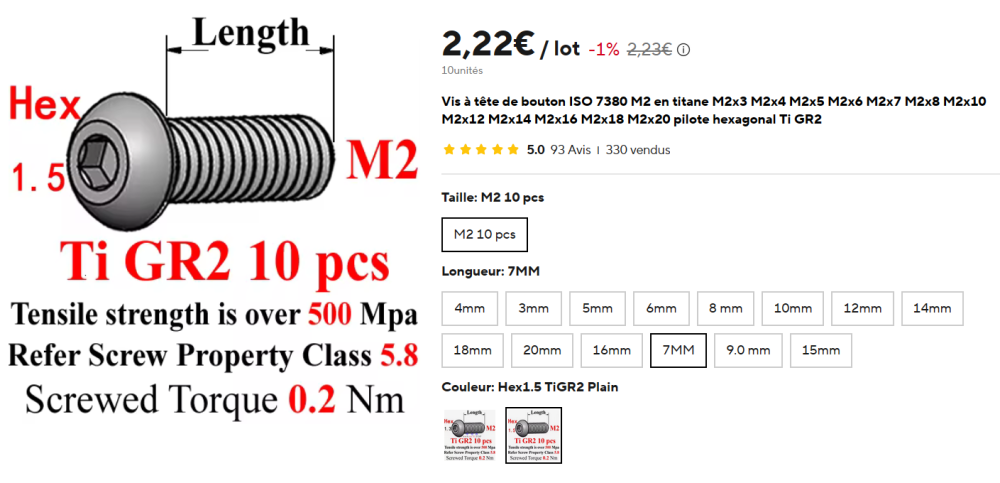 Feisar Posté(e) Mai 21 Signaler Posté(e) Mai 21 (modifié) Magnifique build, comme toujours, il t'a vraiment donné du fil à retordre ce 3.5" mais le résultat est vraiment là et carrément top et bien pensé, ça fait plaisir Je me pose juste une question, je vois cette mode qui a tendance à faire rentrer les antenne VTX complètement dans les TPUs, est-ce que ça ne dégrade pas trop la réception au final ? Have fun avec cette nouveau joli moustique et ramène-nous plein de belles images avec le O4 Pro Le 19/05/2025 at 14:05, Jerome a dit : Si qqun a un plan pour des vis de 7mm, idéalement en titane et torx, je suis intéressé J'ai pas trouvé mieux que ceci a priori : Modifié (le) Mai 21 par Feisar 1