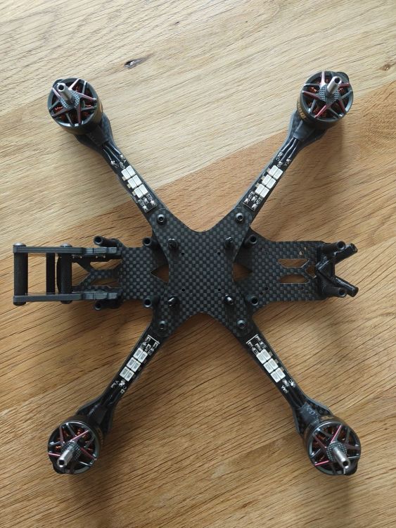 Wanegain Posté(e) Juin 5 Auteur Signaler Posté(e) Juin 5 Bon, je n'ai pas eu le temps de faire grand chose pour le moment à part monter la frame, installer les moteurs et les souder aux racewire... J'espère ce soir avoir le temps d'aller jusqu'aux ESC. Je dois refaire le montage à blanc pour bien vérifier dans quel sens je vais mettre la stack mais à priori il y a quand même pas mal de place pour avoir la pigtail à l'arrière. Concernant l'ESC j'ai posé la question au vendeur aliexpress pour savoir comment je peux flasher les ESC, j'attends une réponse en croisant les doigts qu'il y a bien un firmware compatible 1