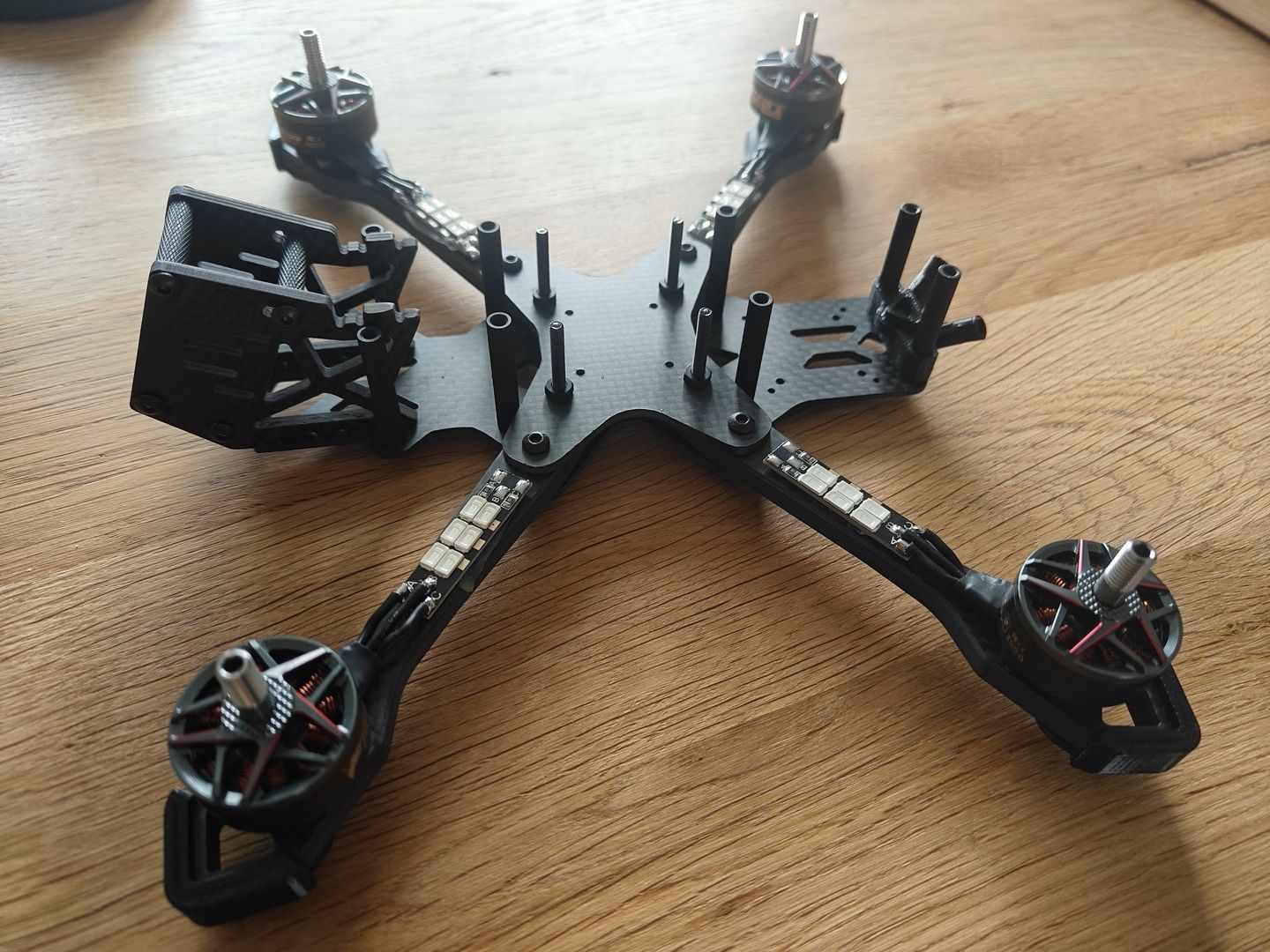 Wanegain Posté(e) Mai 27 Signaler Posté(e) Mai 27 Bonjour à tous, Tout fraichement débarqué dans le FPV (et sur le forum), voici la build que je suis en train de me préparer après plusieurs mois de recherches et de commandes au fur et à mesure... Tout d'abord la Frame, j'ai naturellement choisi le JeNo 5.1 car c'est celui qui me sert d'entrainement dans Tryp FPV et en plus il est français (d'ailleurs merci et bravo aux créateurs @nochamo@Jerome pour cette magnifique frame ). Ce qui m'a conduit à prendre les T-Motor F60 Pro IV (je les ai commandé en 1750Kv pour débuter mais je les ai reçus en 1950KV donc on attaque avec du lourd) sur lesquels je vais monter des HQProp Ethix P3. Bref j'ai essayé de partir sur le modèle présent dans le simulateur. Pour la FC j'ai choisi un stack JHEMCU F745 avec ESC AM32 60A. Le RX c'est un Radiomaster XR1 et ma radiocommande une Radiomaster Pocket Côté vidéo, je suis équipé en Walksnail Googles L et je prévois de monter un VTX Moonlight car j'aimerai éviter de monter une caméra supplémentaire sur mon drone (ceci dit je possède déjà une Runcam Thumb 2 mais je ne suis pas certain qu'elle m'apporte une meilleure image que le moonlight). Avec ce drone je compte faire du freestyle (mais quand je vois ce que certains arrivent à faire, j'admire et je déprime car le gap me parait tellement loin...) et de la cinématique (j'ai prévu une lipo 4s 2000mAh pour tester, car dans Tryp FPV ça passe pas trop mal) pour filmer les montagnes à côté de chez moi. En attendant de commencer à monter tout ça, je continue de potasser betaflight, m'entrainer sur Tryp FPV (et un peu de velocidrone sur mon téléphone quand j'ai pas accès au pc).. Je vais essayer d'alimenter ce post au fur et à mesure de la construction (en postant des photos bien entendu) car je pense que le tout premier build c'est une expérience qui doit être partagée Si vous avez des remarques, surtout n'hésitez pas ! 2