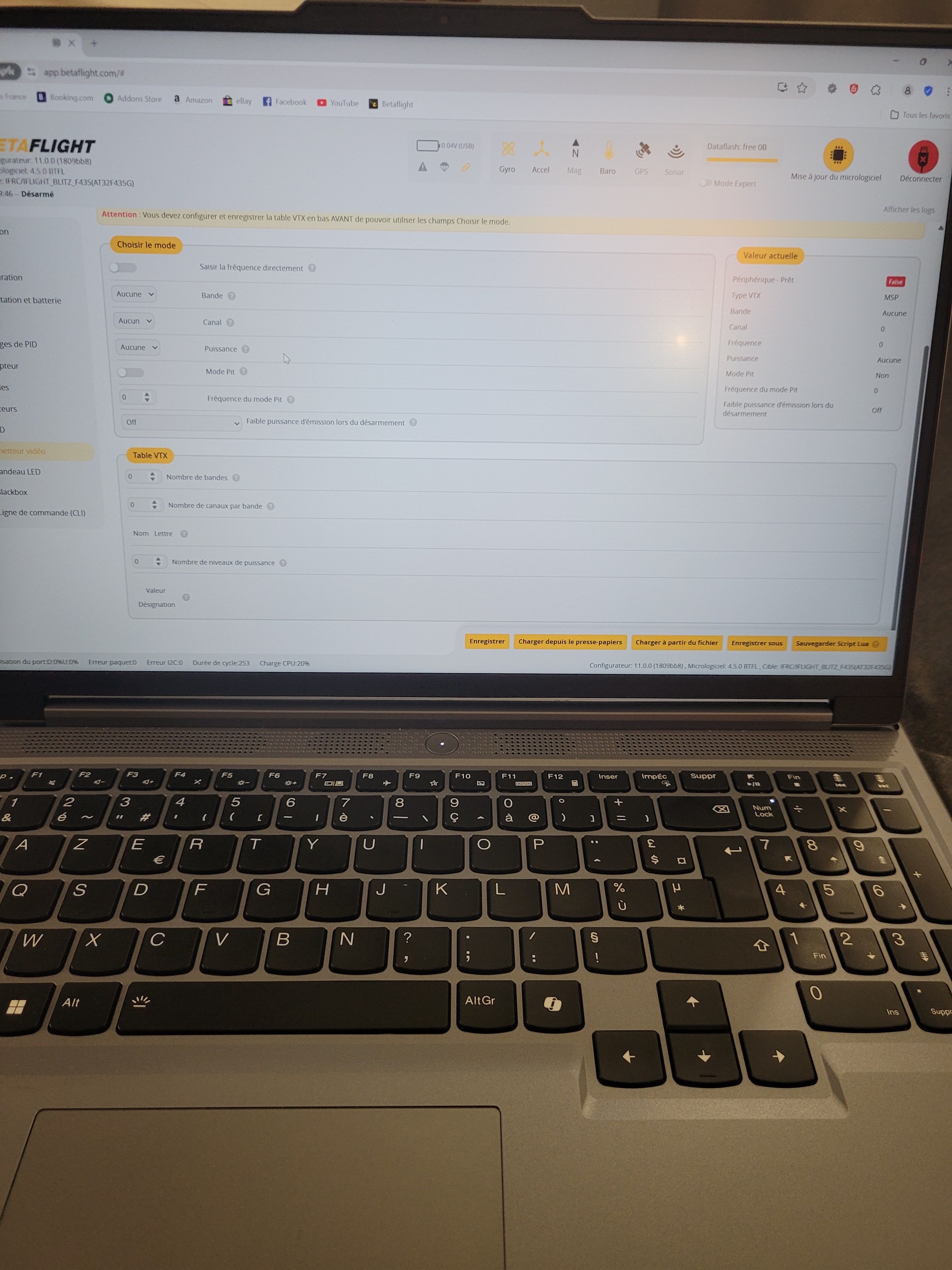 gregory Posté(e) Juin 3 Auteur Signaler Posté(e) Juin 3 il y a 6 minutes, spid99 a dit : Sur tes "photos" d'écrans, tu n'es pas alimenté, la radio et le O3 ne fonctionnent qu'avec une alimentation. La je suis alimenté le masque et la radiocommande fonctionne j'ai le retour vidéo et la connections avec la radiocommande, pourquoi il y a rien dans betaflight ?
