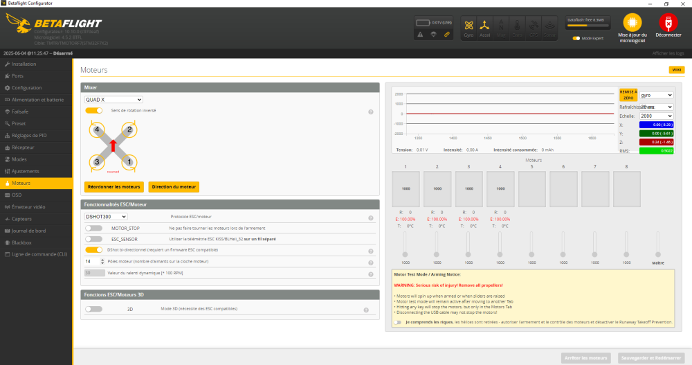 Motard Geek Posté(e) Juin 6 Signaler Posté(e) Juin 6 Le 04/06/2025 at 11:29, ManiaCoss a dit : pour Le RPI filter c'est dans quelle onglet ? L'image juste au dessus de ce texte, DShot Bi-Directionnel. Tu peux essayer sans.