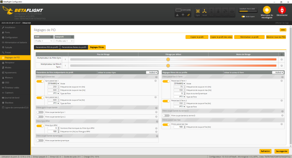 ManiaCoss Posté(e) Juin 4 Auteur Signaler Posté(e) Juin 4 pour le nombre de moteur on est bon je viens de vérifier sur le drone et j'étais bon sur betaflight pour Le RPI filter c'est dans quelle onglet ?