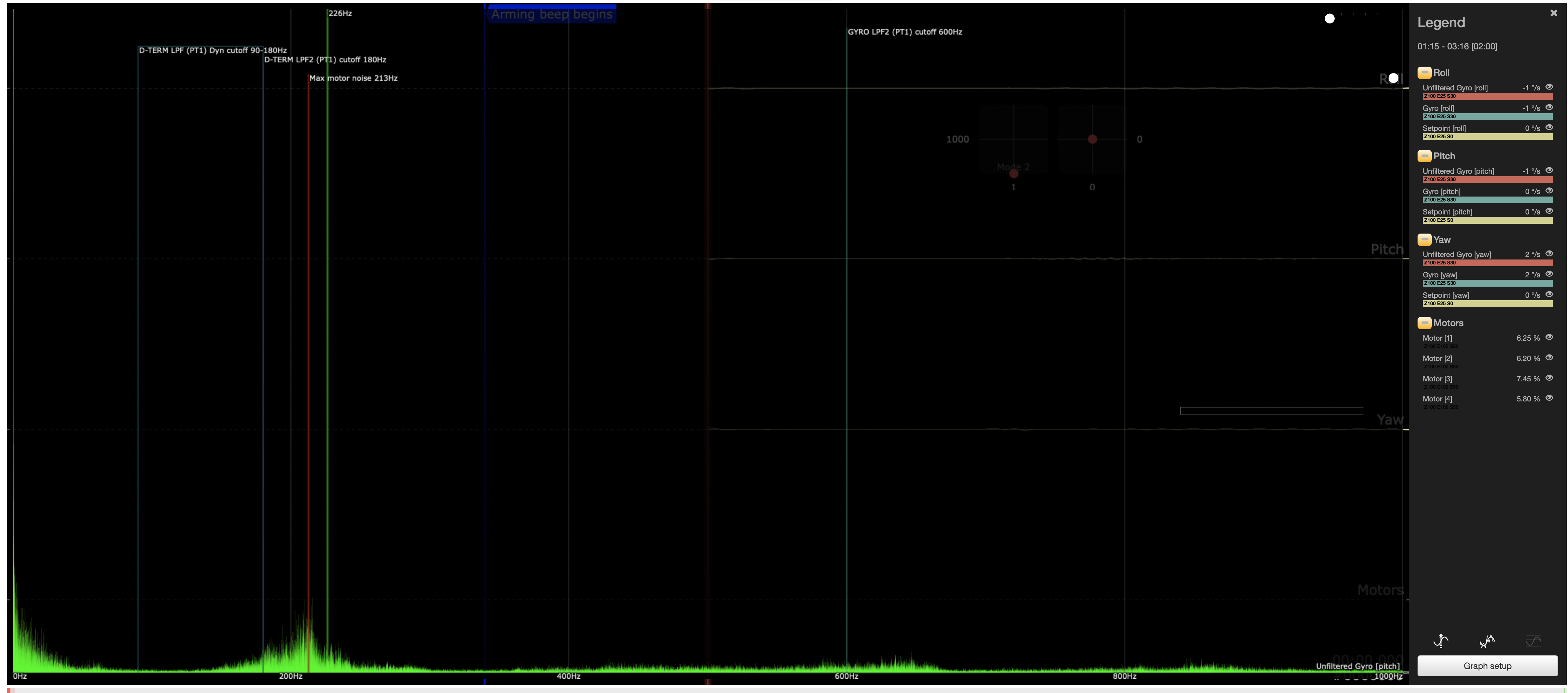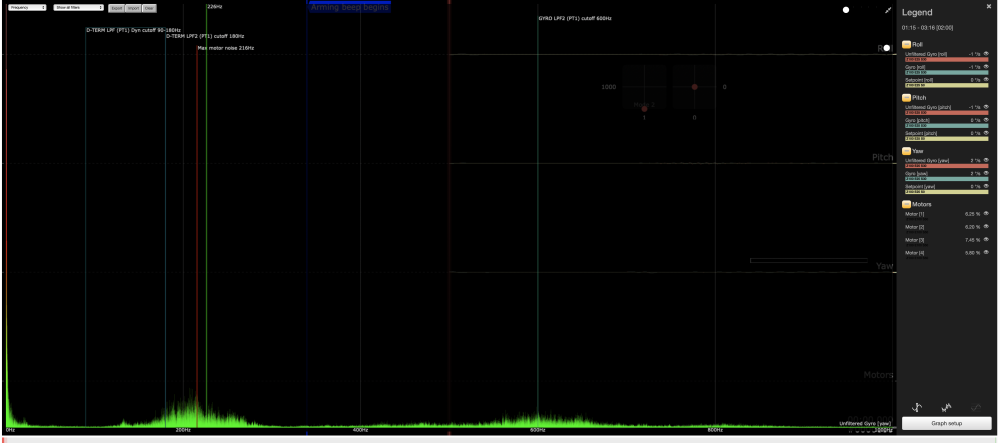 antonin42 Posté(e) Juin 6 Signaler Posté(e) Juin 6 bonjour, je viens de me monter un JENO 7 avec -speedybee F405 essc 55A -moteur brother hobby 2805 1300KV -betafligjht 4.5 -DJI O4 pro -props HQ 7X3.5X3 LIGHT GREY -Lipo 1600 mah -j'utilise des cam plate soft mount imprimé en TPU à 100% en faisant mes premières vol je me retrouve avec énormément de jello je vous joint des photos de mes PID si quelqu'un peux m'aider PS:j'ai une vidéo au cas ou merci a tous Ci joint la Blackbox du gyro non filtré