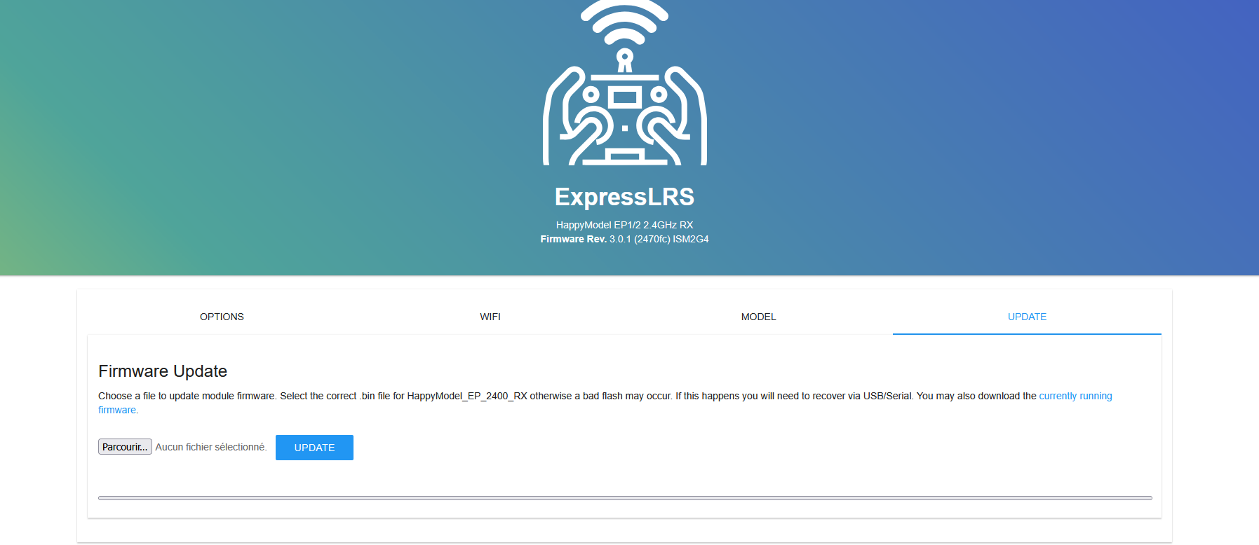 Silverglade Posté(e) Juin 8 Signaler Posté(e) Juin 8 Citation via le portail web captif du Tx ou Rx en mode Wi-Fi. Ce que j'ai fais avec mon mobula pour le bind ?