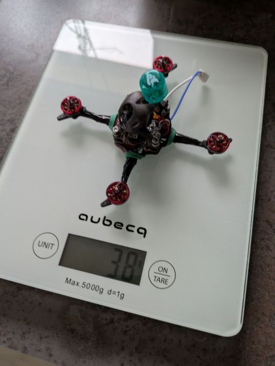 sjollo Posté(e) Juin 15 Auteur Signaler Posté(e) Juin 15 (modifié) J'ai pu confirmer le bon comportement du drone ce weekend. Le drone réagit bien, et résiste mieux au vent malgré son poids plume. Ce qui m'a vraiment frappé, c'est le temps de vol! J'ai fait plusieurs vols à plus de 5mn avec 1 lipo alors qu'avant j'avais entre 3mn30 et 4mn par lipo 1s! Je pense que le drone est plus efficace sans les protections d'hélices, et avec quelques grammes en moins, ca plane! Je suis reparti avec les réglages par défaut de BF. Je n'ai pas été trop agressif niveau pilotage, mais j'ai clairement moins de vibrations / wobble qu'avant, ce qui m'a permis de virer des filtres. La prochaine fois je vais tenter un peu de freestyle et essayer de tuner un peu mieux le PID pour voir si je peux le rendre un peu plus réactif..... Modifié (le) Juin 15 par sjollo