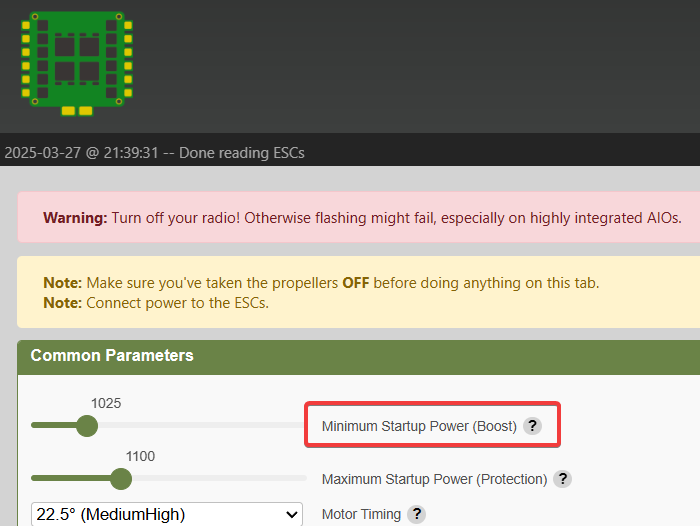 Feisar Posté(e) Juin 12 Signaler Posté(e) Juin 12 Vérifie également coté ESC au niveau du firmware Bluejay (flasher la dernière version si pas déjà fait), tu peux essayer de monter un peu le 'Minimum Startup' éventuellement :