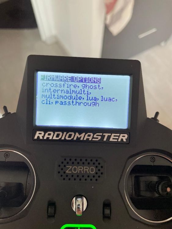 LeDon73 Posté(e) Juin 16 Auteur Signaler Posté(e) Juin 16 Oui c'est ce que je me suis dis à première vue mais ce qui me fait croire que c'est plus une 4 in 1 c'est premièrement que quand je veux scroller pour potentiellemet aller sur d'autre que protocole que crsf il y a un bip et la radio vibre comme si il y avait juste un bug dans le opentx que j'ai flashé et aussi cet affichage Il y a 2 heures, Attafr a dit : Je pencherai plus pour ELRS si tu n’as que CRSF comme sélection possible! https://www.wearefpv.fr/test-radiomaster-zorro-elrs-20221102/ openTX c’est un peu fini, maintenant c’est EdgeTX Oui c'est ce que je me suis dis à première vue mais ce qui me fait croire que c'est plus une 4 in 1 c'est premièrement que quand je veux scroller pour potentiellemet aller sur d'autre que protocole que crsf il y a un bip et la radio vibre comme si il y avait juste un bug dans le opentx que j'ai flashé et aussi cet affichage
