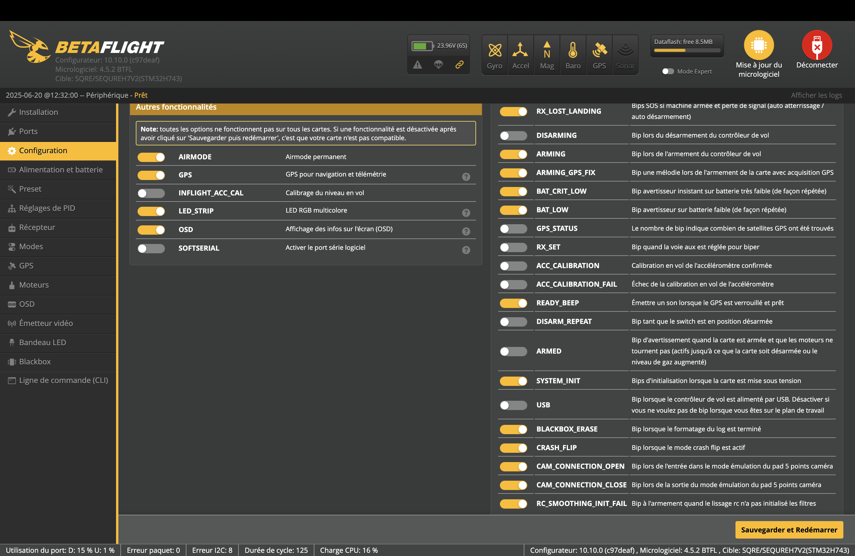 Plus qu'à paramétrer le GPS Rescue et let's go.