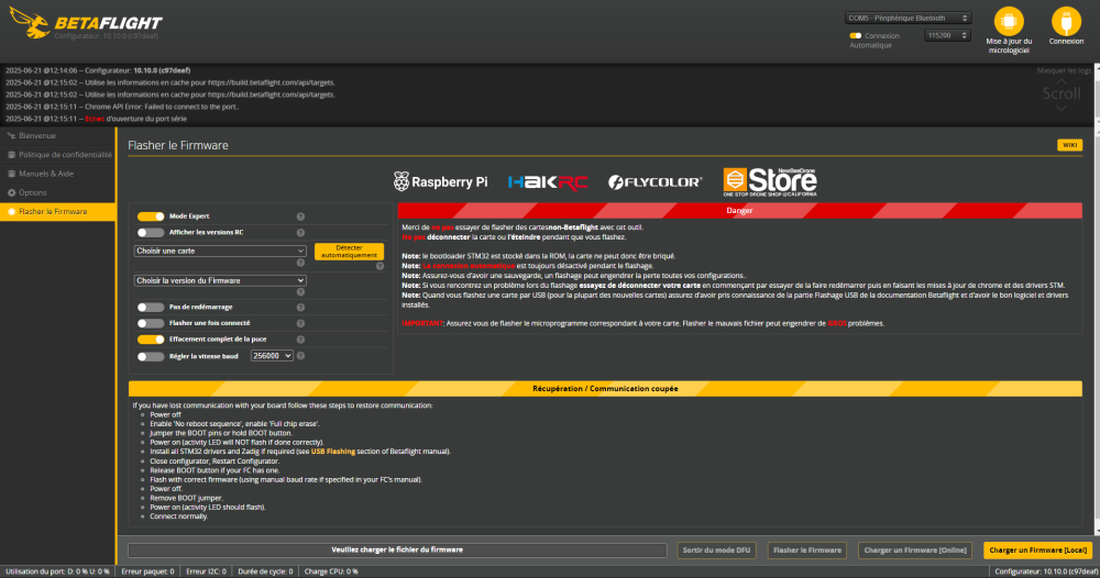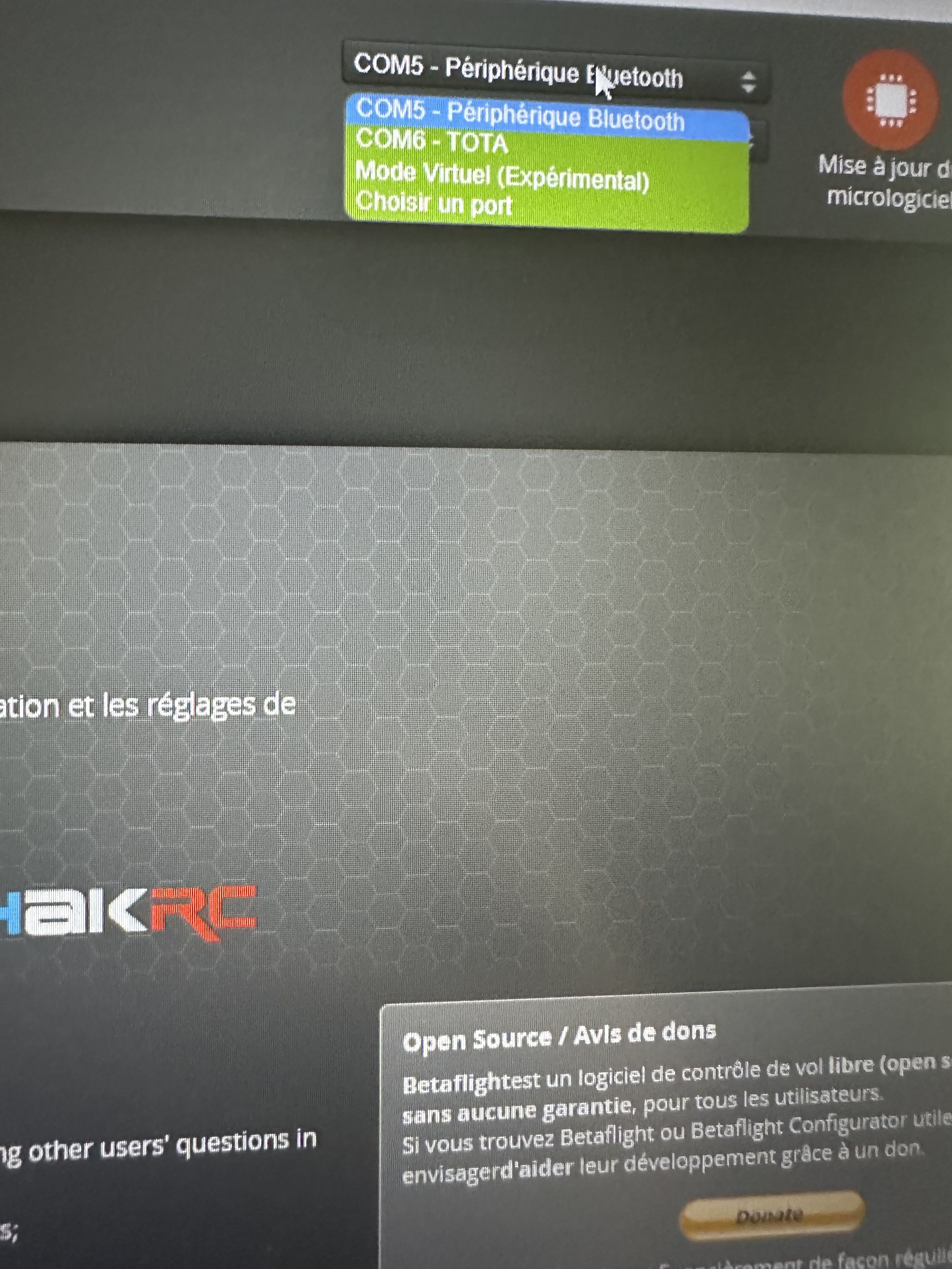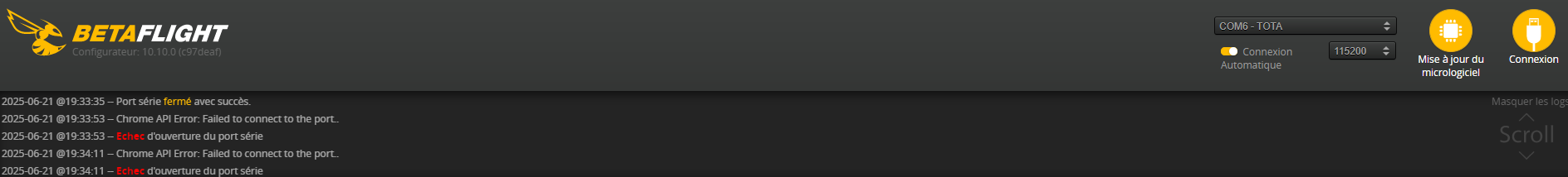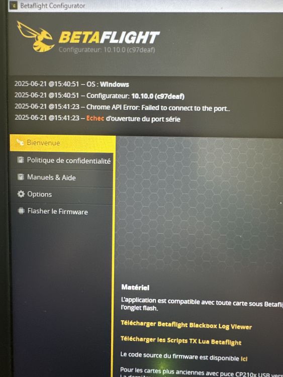 bonjour a tous je me suis acheté un drone fpv ( meteor 75 pro o4 )c'est mon tout premier drone fpv et il n'arrive pas a le reconnaitre sur beta flight si quelqu'un serait m'aider merci