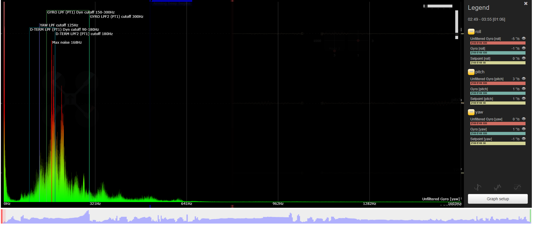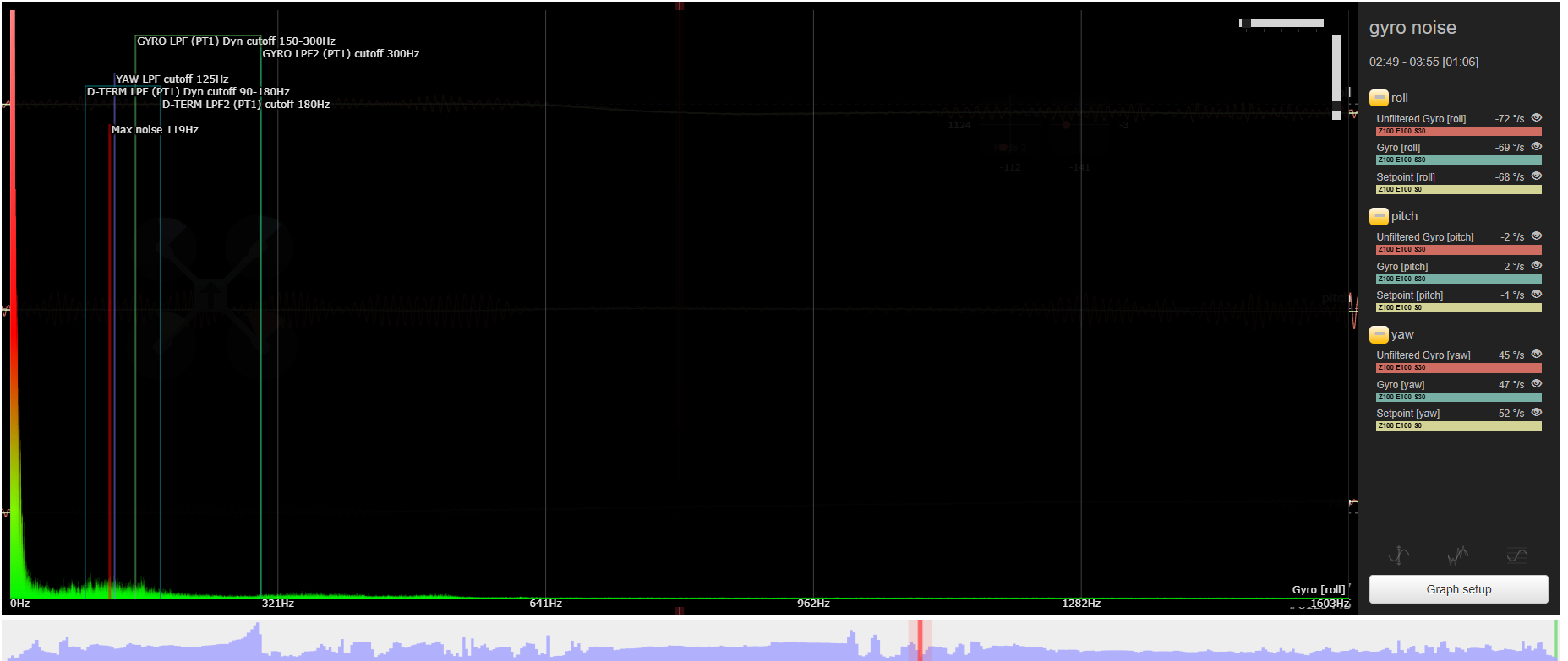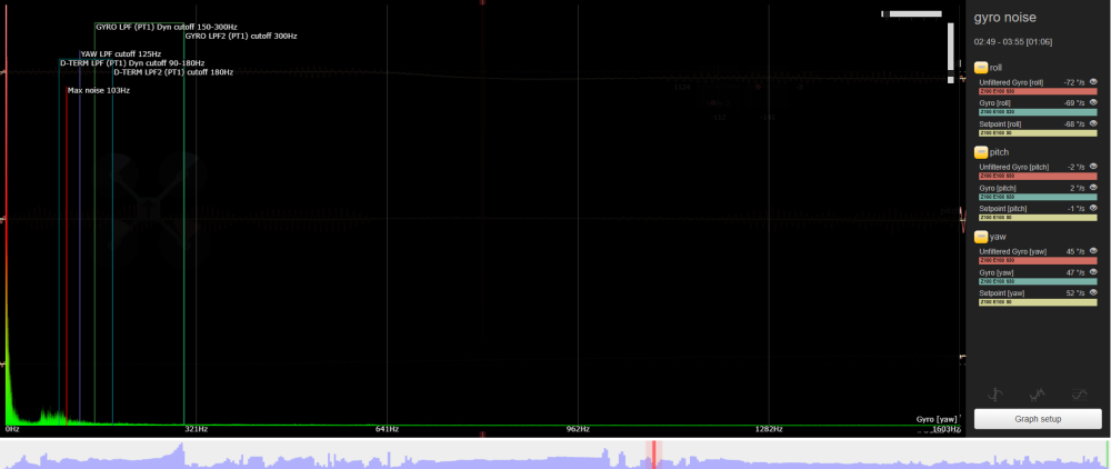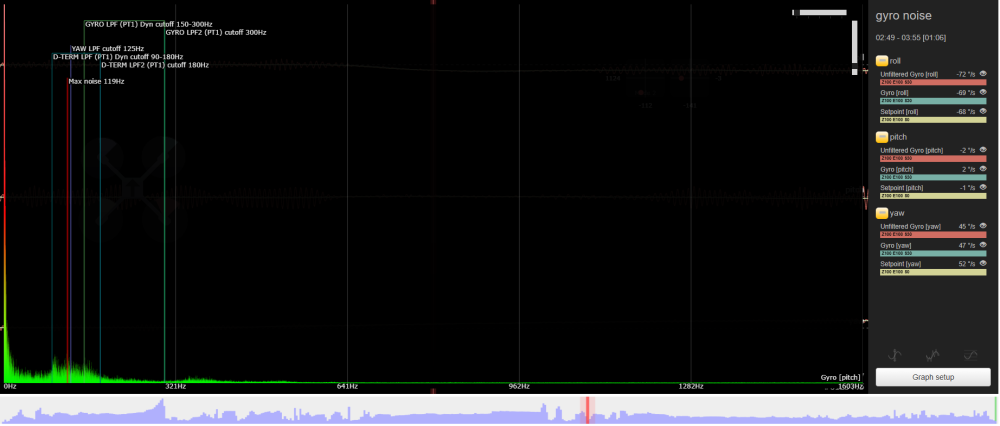 nochamo Posté(e) Juin 22 Signaler Posté(e) Juin 22 en fait tes graph de bruit sont apres filtrage, donc on voit bien que meme trop filtré il te reste du bruit a basse frequence..... cherche pas plus loin a mon avis...... a mon avis (c’est juste un avis), tu as un choix a faire : accepter que ca vibre, et passer tes rush sous gyroflow a chaque fois en croisant les doigts....... changer de frame, pour un truk plus rigide et plus lourd (qui subit moins le vent), type FR7, KL, ou Jeno..... tu perdras un peu en autonomie, mais tu gagneras en qualité de vol..... en gros : pas de bras 8mm, pas de chocolat.....