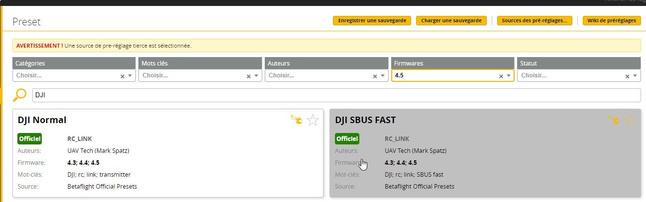 Motard Geek Posté(e) Juillet 9 Signaler Posté(e) Juillet 9 Tu peux essayer d'activer l'inversion du signal même si c'est devenu rare que ce soit inversé de base juste pour FrSky. Tu peux aussi tenter d'appliquer le preset DJI (en remettant le rc smoothing factor par défaut car la valeur du preset ajoute une latence abusée).
