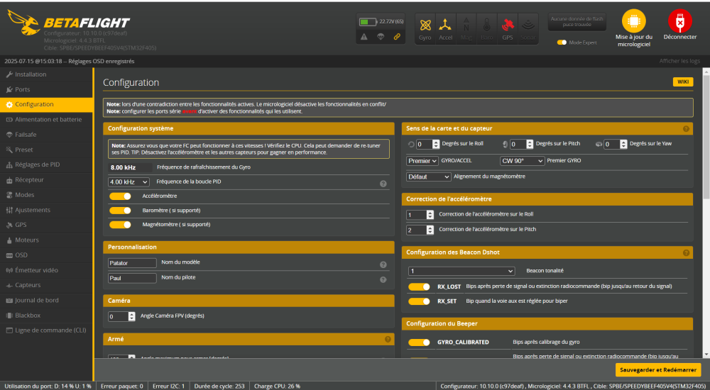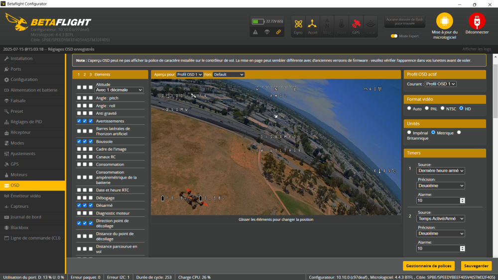 Paul.p_1911 Posté(e) Juillet 15 Signaler Posté(e) Juillet 15 Bonjour, quelqu'un serait il capable de m'expliquer pourquoi l'OSD ne s'affiche pas dans mon masque. J'ai une speedyBee F405 V4 et un air unit o4 pro, j'ai déja vérifié et le problème ne vient pas des soudures TX/RX. Voici quelques photos, si vous trouvez quelque chose d'anormal, n'hésitez pas à me le signaler !