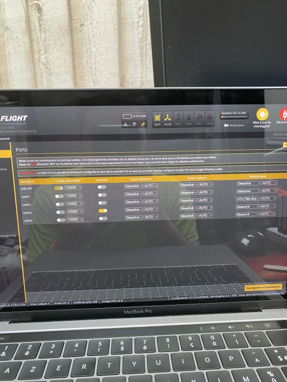 spid99 Posté(e) Juillet 18 Signaler Posté(e) Juillet 18 (modifié) Surement l'UART "Sérial RX" qui doit être différent de celui pour l'ELRS. Au passage je ne voyais pas de MSP pour ton O4 dans les ports, ta photo étant trouble je pense que tu dois sélectionner l'UART 2 pour le MSP et le 1 ou 4 pour sérial RX. Mais pas certain non plus, il peut y avoir autre chose, à tester en tout cas Modifié (le) Juillet 18 par spid99