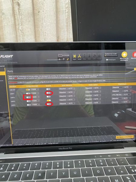 OSCAR.DIETRICH Posté(e) Juillet 18 Auteur Signaler Posté(e) Juillet 18 il y a 29 minutes, spid99 a dit : Normalement c'est 6 pour avoir la RC Dji As-tu enregistrer la RC ? Vérifie bien que tu soit en "Normal" (protocole) dans les lunettes et en "SBUS" dans Bétaflight. Puis que dans l'onglet "Ports" vérifie aussi si tu as bien sélectionné le bon UART pour la colonne RX Série Ok je check cela et je vous dis merci d'avance il y a 53 minutes, spid99 a dit : Normalement c'est 6 pour avoir la RC Dji As-tu enregistrer la RC ? Vérifie bien que tu soit en "Normal" (protocole) dans les lunettes et en "SBUS" dans Bétaflight. Puis que dans l'onglet "Ports" vérifie aussi si tu as bien sélectionné le bon UART pour la colonne RX Série Ok Ou voir si le si il est bien SBUS ? Bon je n'y arrive pas si quelqu'un est chaud pour un call je suis totallement perdu Et je suis bien en protocol Normal je suis perdu sur Betaflight