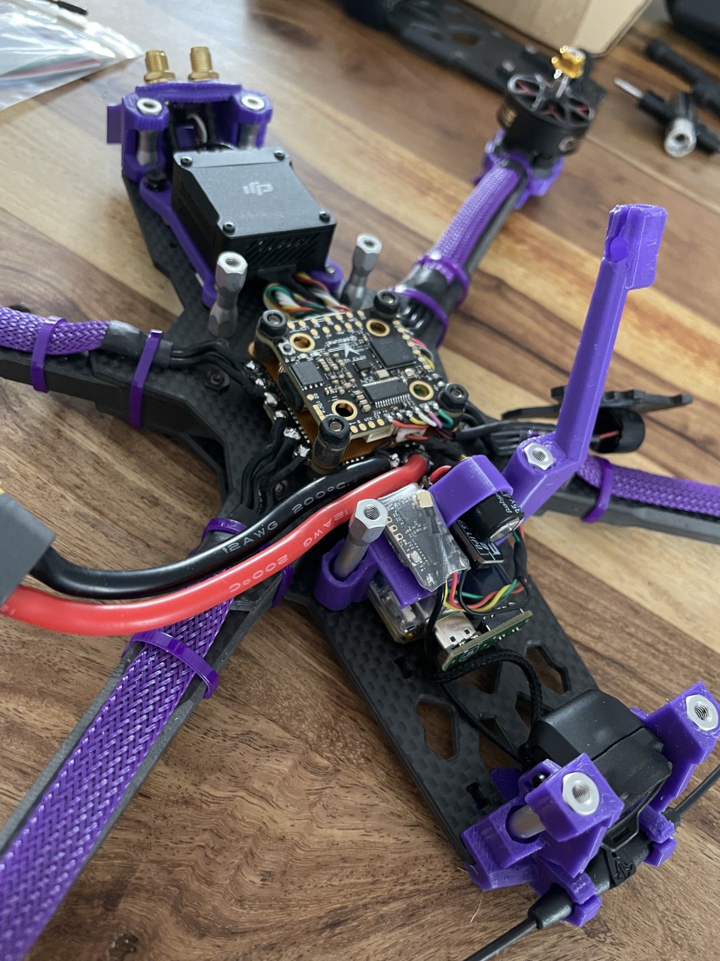 Boun74 Posté(e) Aout 2 Signaler Posté(e) Aout 2 Topic Attachments Bonjour à tous, en tout début d'année je me lançais dans la construction de mon premier drone, un Kayouloin. Après plusieurs mois et quelques petites évolutions, voici un retour sur cette construction et l'utilisation. Sur ces deux photos on peut voir les quelques évolutions: - remplacement du support du air unit O3, les TPU d'origine permettent d'installer correctement seulement deux vis sur quatre ( impossibilité de mettre les écrous qui viennent toucher le boitier). N'ayant pas d'imprimante 3D j'ai trouvé ce TPU (deuxième photo) malheureusement en noir mais au final c'est propre. - remplacement du RX, à la base j'avais un TBS crossfire nano RX, je l'ai remplacé dernièrement par un TBS crossfire diversity nano RX et donc par l'installation d'une deuxième antenne Immortal T V2 dans le TPU prévu à cet effet sur la gauche de la frame. Le backup batt du RX est branché sur la Lipo qui alimente le Vifly beacon, une solution trouvé par hazard sur le net mais qui va très bien (mieux que la Lipo de mon météor 65 que je rajoutais sous les strap avec ma Li ion ). En plus, si j'ai bien compris, en fonctionnement la Lipo servant de backup pour le RX est rechargé ce qui m'évite de devoir la recharger comme je faisais avant, même si c'était pas souvent. - remplacement des entretoise d'origine grises par des entretoises couleur doré, c'est pas grand chose mais comme les écrous des hélices sont doré c'est quand même plus joli! - prochain changement pas encore fait et donc pas visible sur la photo, laisser mon O3 pour passer sur un O4. Le Kayou en utilisation: Venant de l'aéromodélisme (hélico, avion, planeur) les premiers vols se sont fait directement en réel sans passer par un simu, pas très conseillé mais n'ayant pas comme objectif de faire du freestyle pour le moment j'étais confiant et tout s'est bien passé. Les premiers vols sont très basique, déjà pour adopter ce nouveau mode de pilotage en FPV et ensuite comme je l'ai appris en aéromodélisme, gérer le stationnaire, les translations et ensuite continuer avec de plus grandes évolutions. Tous mes premiers vols se font avec ma vieille Gopro mais je vois très vite quand j'enregistre que celle-ci est largement dépassé par le O3. Je vol également de temps en temps avec une Lipo 5100mAh que j'ai pour le modélisme, le poids est conséquent mais sans la Gopro et en faisant des vols sans tirer dessus j'arrive à approcher les 20min avec pas mal de dénivelé durant le vol. Je me suis rendu compte à l'usage qu'en cas de commande relativement rapide le drone faisait des choses bizarre qu'il ne fait pas avec les Li ion (si je mettais un gros coup de roll, la drone faisait bien un mouvement sur le roll mais finissait avec un mouvement en tangage). Je ne sais pas si ca vient du poids de la Lipo mais dès que je passe sur les Li ion plus aucun soucis. Je vol avec deux Li ion de confection local en 4400mAh, en général mes vols atteignent les 14min sans trop de soucis sachant que dans presque tous mes vols le drone fait sans trop de problème au moins 1000m de dénivelé. Pour le moment ca me va bien mais je commence à regarder pour me faire une Li ion avec un peu plus de capacité, on en veut toujours plus . J'ai fais mes réglages de filtrage et de PID en suivant les vidéos youtube principalement de We are FPV, j'ai pas cherché non plus à avoir un tune parfait mais même avec ma petite expérience en FPV je dois dire qu'à un moment dans le tune je sentais vraiment le drone au bout des sticks, ca a été net comme changement j'ai donc arrêté les réglages là. Depuis mes premiers vols en Février, je touche du bois, mais je n'ai pas encore subit de crash et le drone totalise à ce jour pas loin de 20h de vol (oui je compte les heures de vols de mon drone , déformation professionnelle). Dans mes vols je ne cherche pas à passer au plus près des arbres lors de mes descentes, je fais constamment attention au niveau de ma batterie, particulièrement au vent s'il est mal orienté pour le retour à "la base" ce qui peut vraiment rallonger le vol s'il est de face lors du retour. Depuis quelques jours j'ai changer mon RX pour un diversty et le RSSI est bien meilleur à partir d'une certaine distance, j'ai vu une vraie différence lors du premier vol dans ma zone de vol test. Je n'ai plus qu'à réussir à me familiariser avec le "find mode" pour réussir à m'en servir en cas de perte du drone. J'ai bien l'enregistrement des coordonnées GPS dans l'OSD mais bon je préfère avoir plusieurs possibilités, on sait jamais. J'attends de laisser mon O3 et passer en O4 pour voir si j'investi dans une Gopro ou pas mais pour le moment continu de voler sans Gopro. Voilà j'ai résumé en quelques lignes mes 7 premiers mois dans le FPV, depuis je me suis monté un Meteor 65 pro parceque bon quand il pleut c'est bien de pouvoir voler aussi dans la maison, et pour m'occuper l'hiver prochain je commence à me pencher sur le montage d'un 5" pour continuer à me faire des vols tranquille mais faire aussi des vols un peu plus tonic. Composants du Kayouloin: Antenne RX: -Immortal T V2 x2 : 13,80€ Antenne VTX: TrueRC matchstick 5.8GHz Carbon 200mm SMA x2 : 54,90€ GPS: Foxxer M10Q-180 + compas : 22€ Buzzer: -Vifly beacon (Autonome) : 16€ Condensateur: -Condensateur x2 LemonFPV Panasonic Low ESR 1000uF 35V : 3€ Peak absorber: -Anti Spark RUSHFPV Rush Blade Power Filter Board (PFB) Lite : 7€ TOTAL: 851,5€ Liste des composants Frame Kayouloin 7" + TPU 148 € FC Sequre H743 V2 E70 G2 70A AM32 8S ICM42688P 140 € ESCs 4 x Sequre H743 V2 E70 G2 70A AM32 8S ICM42688P Moteurs 4 x Axisflying C287 1350KV 140 € Jeu d'hélices 1 x Gemfan flash tripales 7040 2 € Caméra FPV DJI O3 249 € Émetteur vidéo DJI O3 Récepteur radio TBS Crossfire Divertsity nano RX 55 € Prix total : 734 € 2