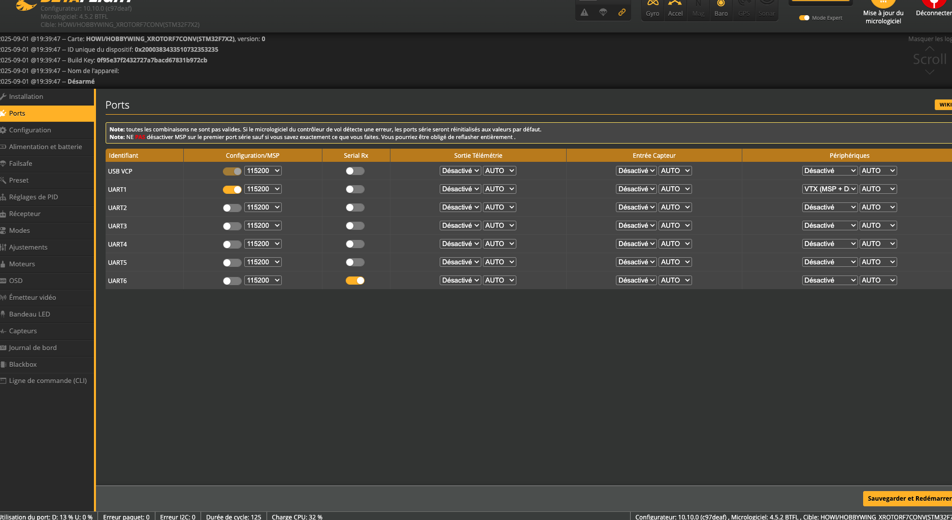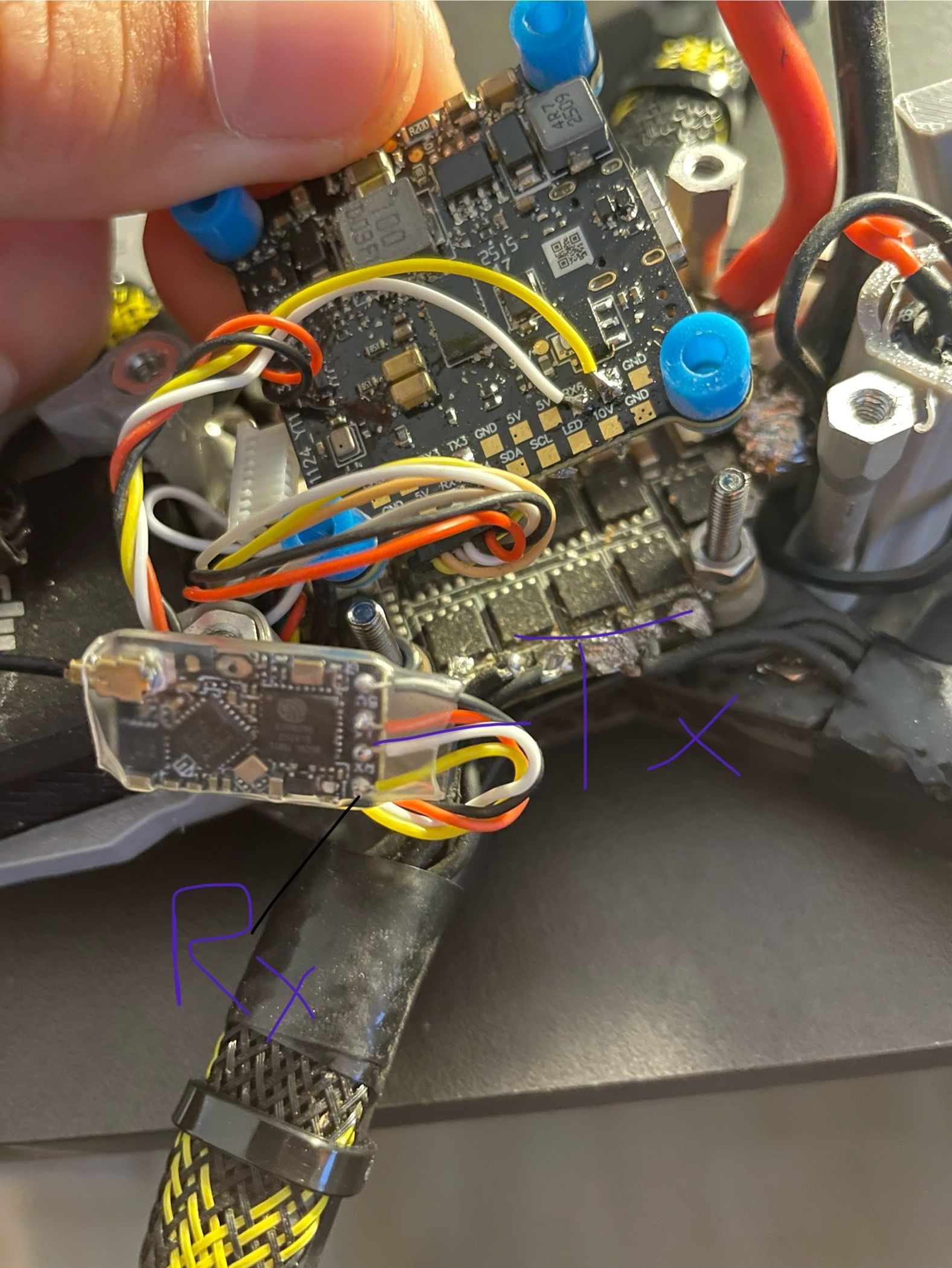 je suis sous ers et j'ai un gros soucis. En gros j'ai une radio ( commando 8 ) avec un nano rx elrs. Les deux sont bin mais le soucis c'est que Betaflight ne détecte pas les mouvements de mon joystick. Au début c'était sur l'art 1 donc c'était "normal" mais j'ai fais tous les parts et c'est pareil. Ma FC est bien en crfs et j'ai inversé le tx et rx comme ça doit être fait mais rien ne se passe...