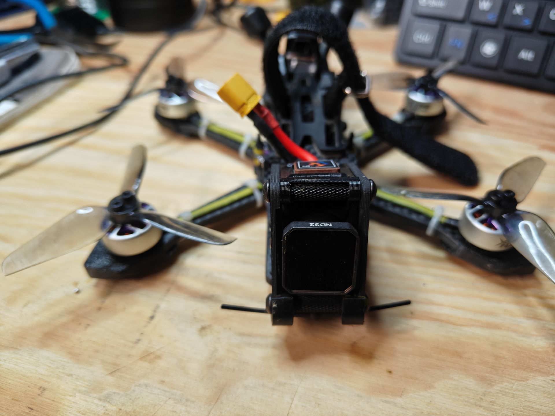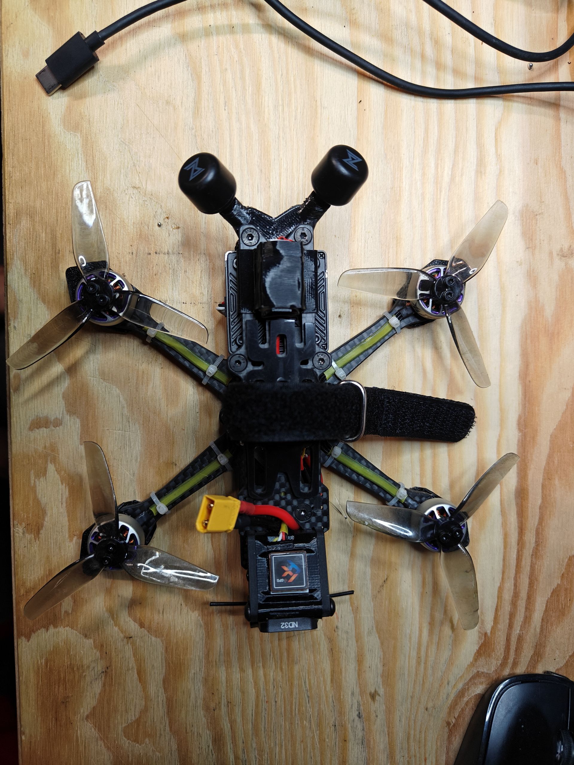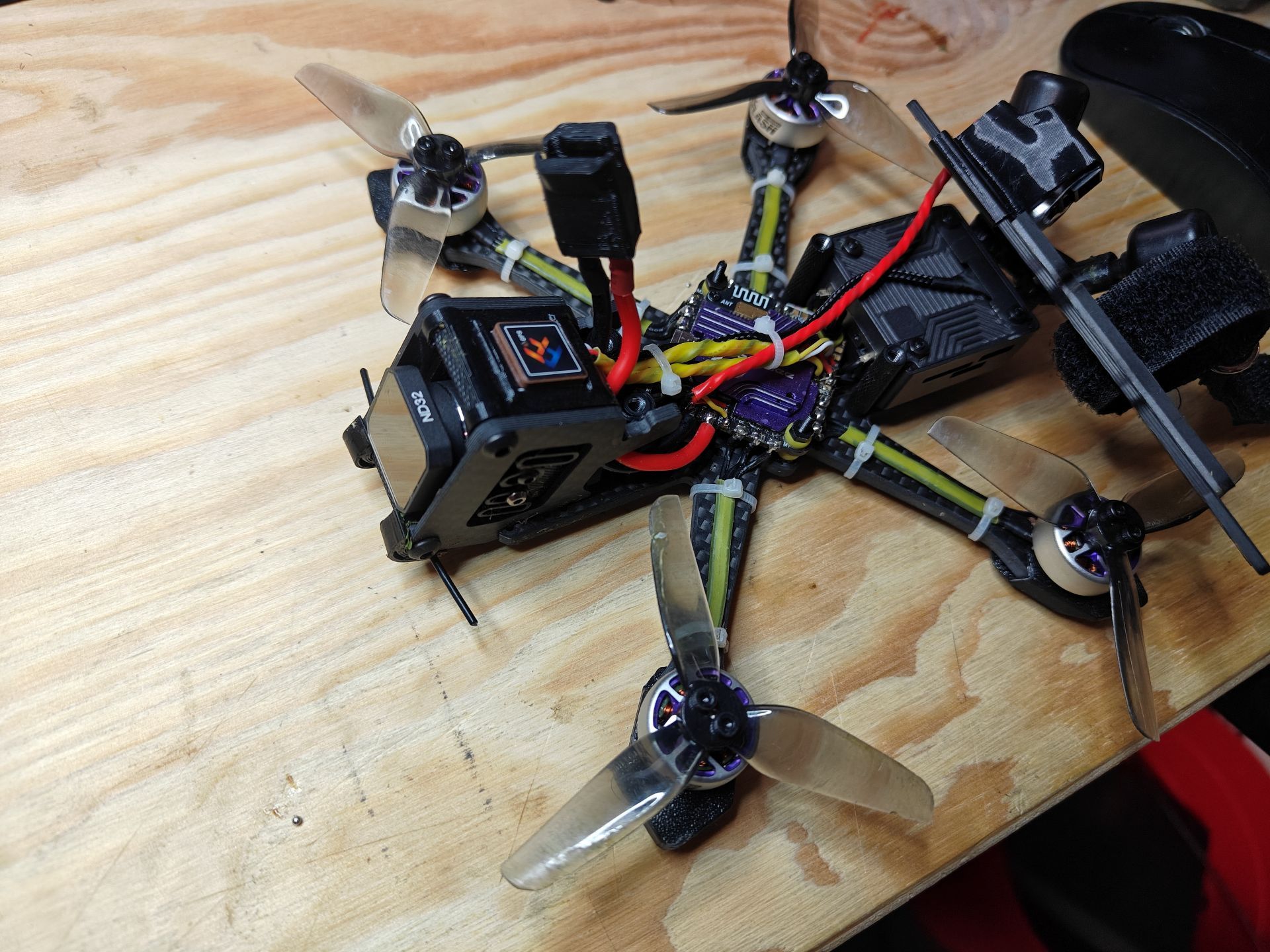 Wanegain Posté(e) Septembre 2 Signaler Posté(e) Septembre 2 Topic Attachments Voici ma première version du Jeno 3" que j'ai perdu dans la montagne (et une suivante identique où j'ai explosé un bras)... Mais une version identique est en cours de montage (pour la 3e fois donc). Etant donné que je vole avec 2 types de batteries (560mAh et 750mAh), j'ai fait un TPU coulissant pour le ViFly sur la top plate qui permet de bien caler la batterie. Cette FC est franchement pas mal, mais il faut savoir qu'elle est prévue pour être installée à 45° mais avec les entretoises de la frame j'ai dû la tourner de 180° (135° à définir dans BF). Elle est très bien fournie en accessoire (il y a même une plaque pour s'entrainer à souder !). Par contre j'ai remarqué que les pads GND sont un peu plus difficiles que les autres à souder, l'étain n'accroche pas beaucoup (et uniquement sur les GND, je n'ai pas d'explication). Par contre j'ai dû faire pas mal d'adaptations pour les TPU, qui sont tous customs à part les protections des moteurs. Mais alors qu'est-ce que ça vole bien ce quad !! La vidéo n'est pas faite avec le kit Moonlight mais avec le kit Avatar HD v2 Liste des composants Frame Jeno 3 44 € FC SpeedyBee AIO F405 40A 63 € ESCs 4 x SpeedyBee AIO F405 40A Moteurs 4 x Flash 1404 4500kV 64 € Jeu d'hélices 1 x HqProp Durable T3x2.5x3 2 € Caméra FPV Walksnail Avatar HD Moonlight 79 € Émetteur vidéo Walksnail Avatar HD Moonlight 169 € Antenne vTx Antenne Walksnail VTX Avatar HD 13 € Récepteur radio Happymodel 2.4G ExpressLRS ELRS EP1 16 € LiPo Dogcom 4S 560mAh 150C 19 € Prix total : 469 € 5