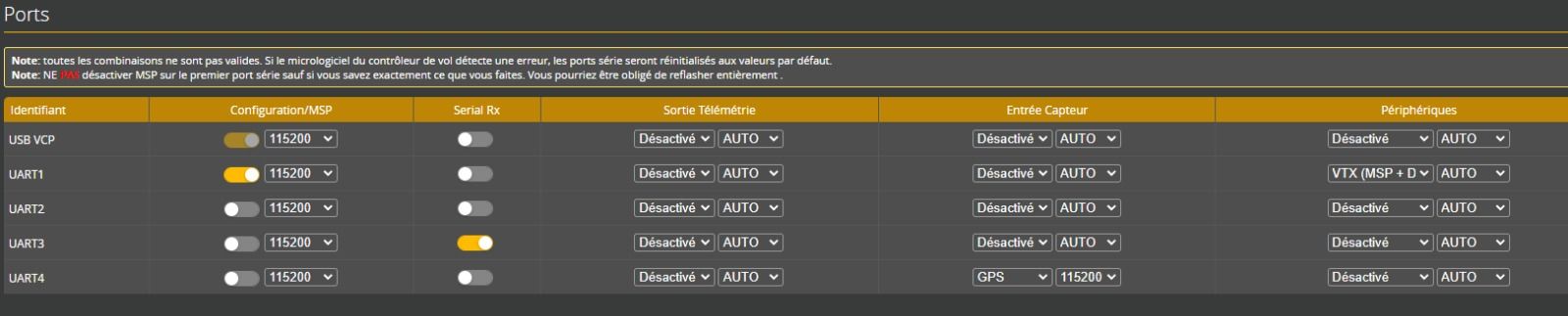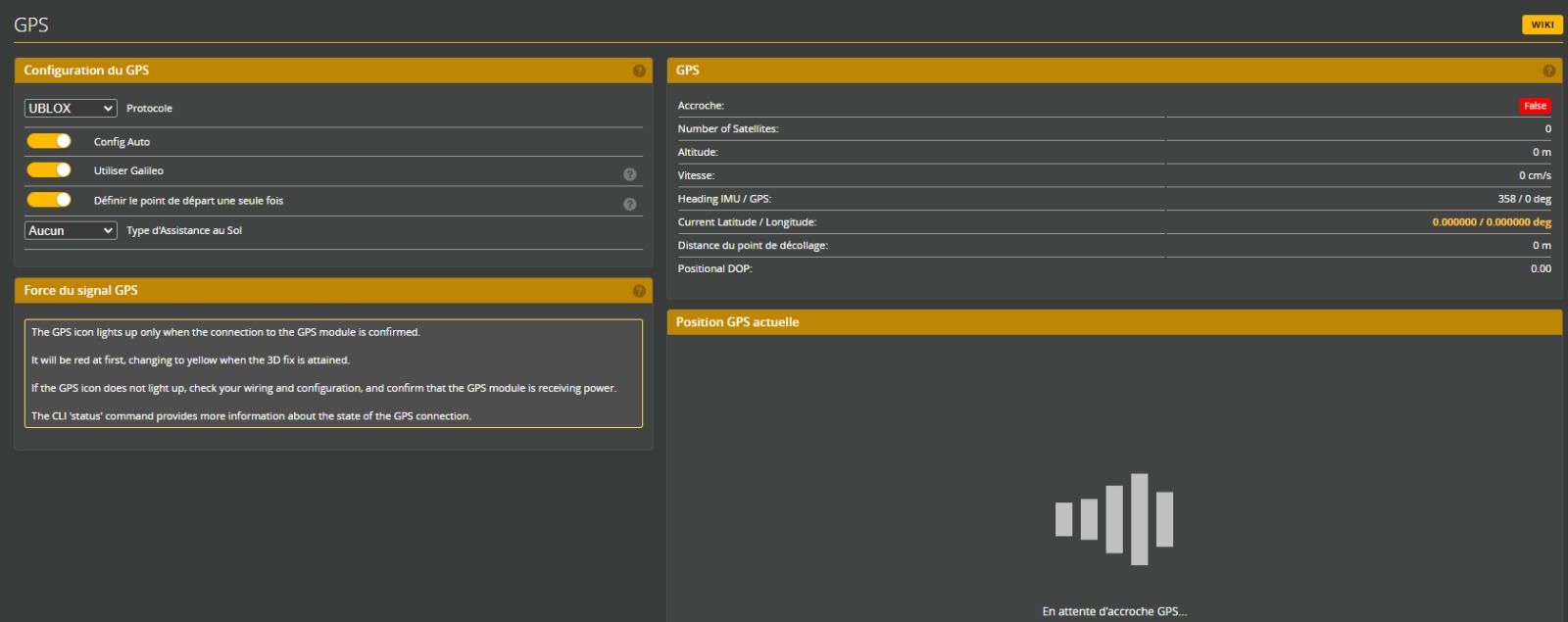 - est que le firmware est flashé avec l'option gps ? (https://oscarliang.com/check-betaflight-build-options/)