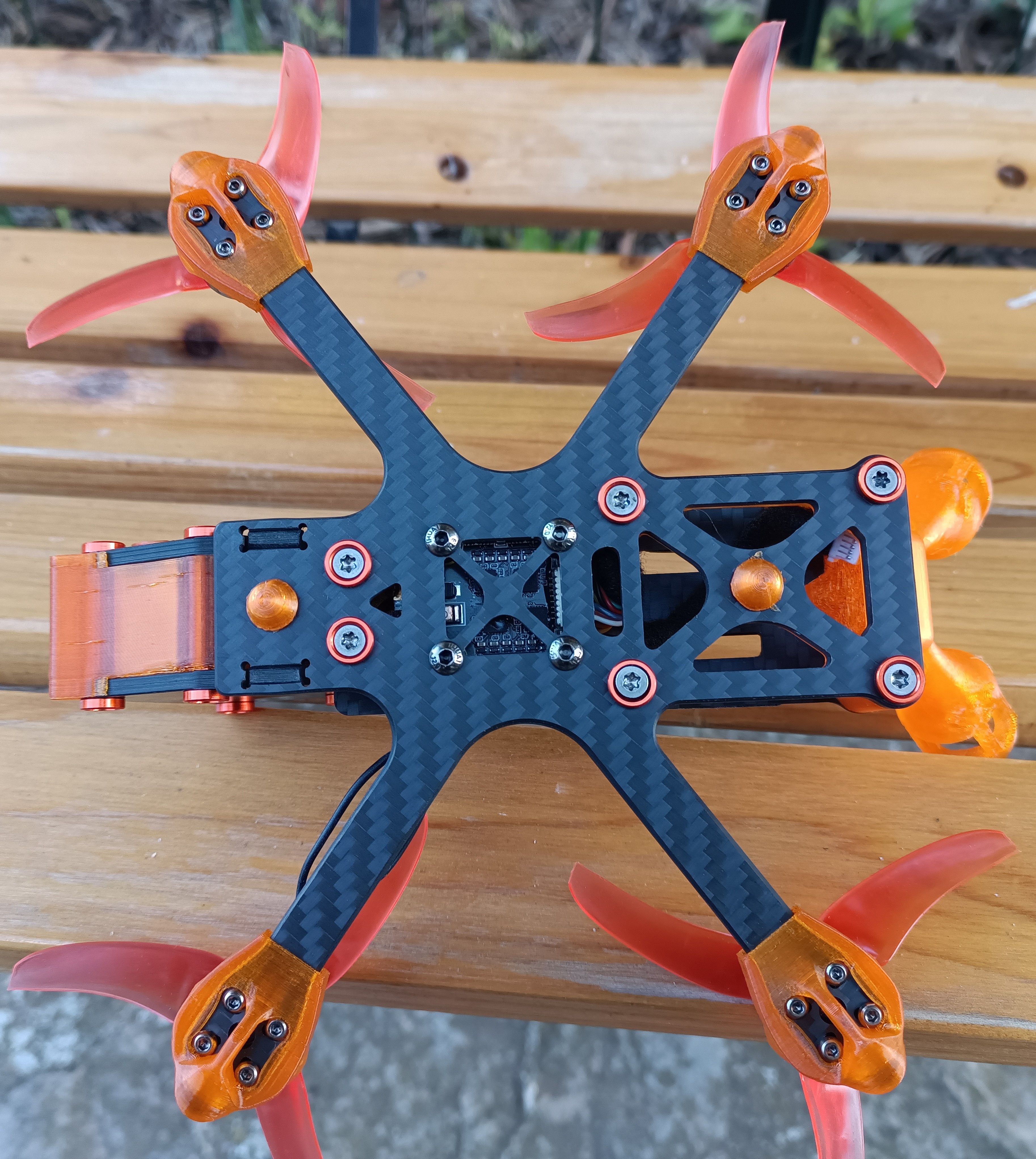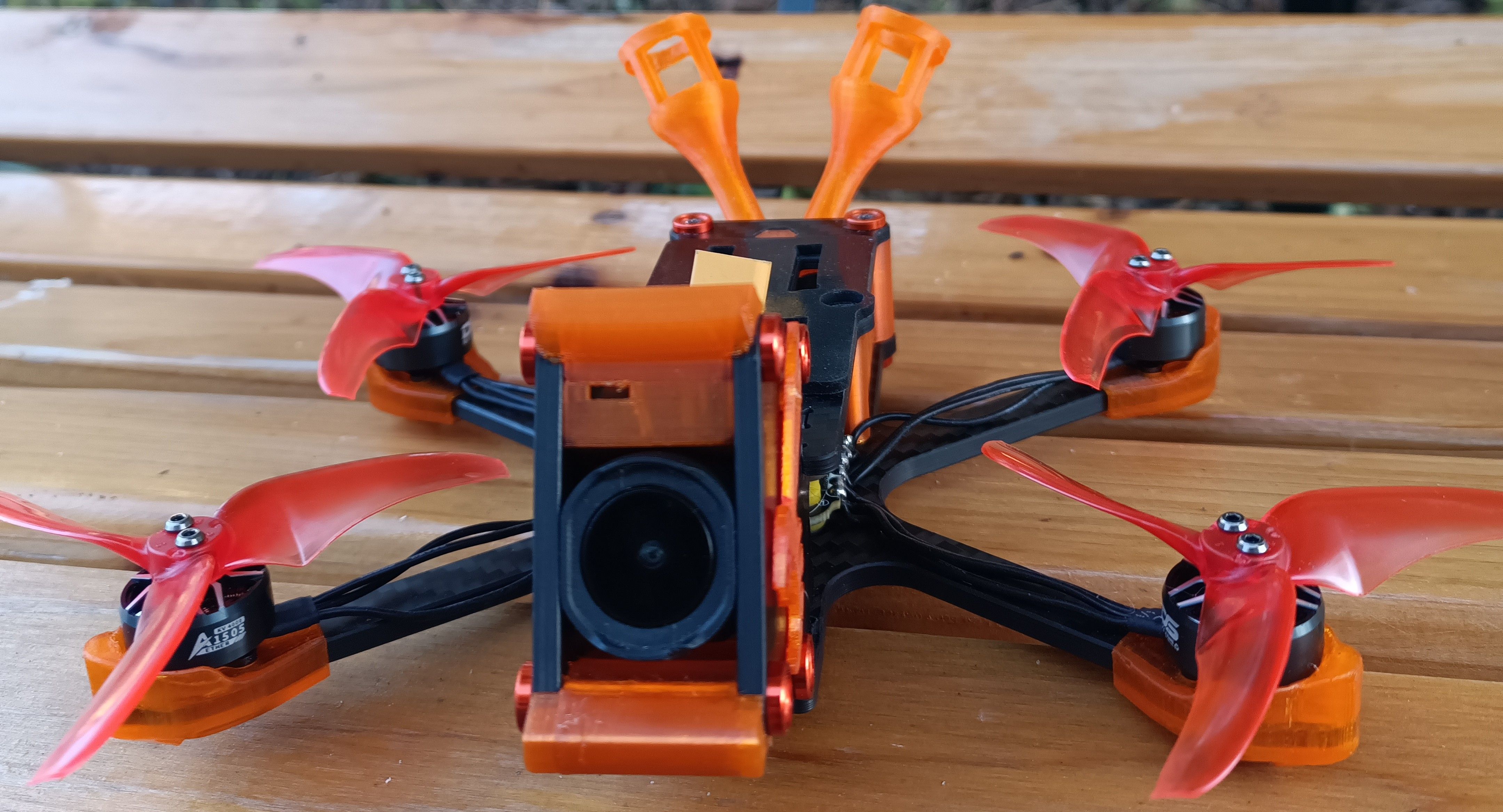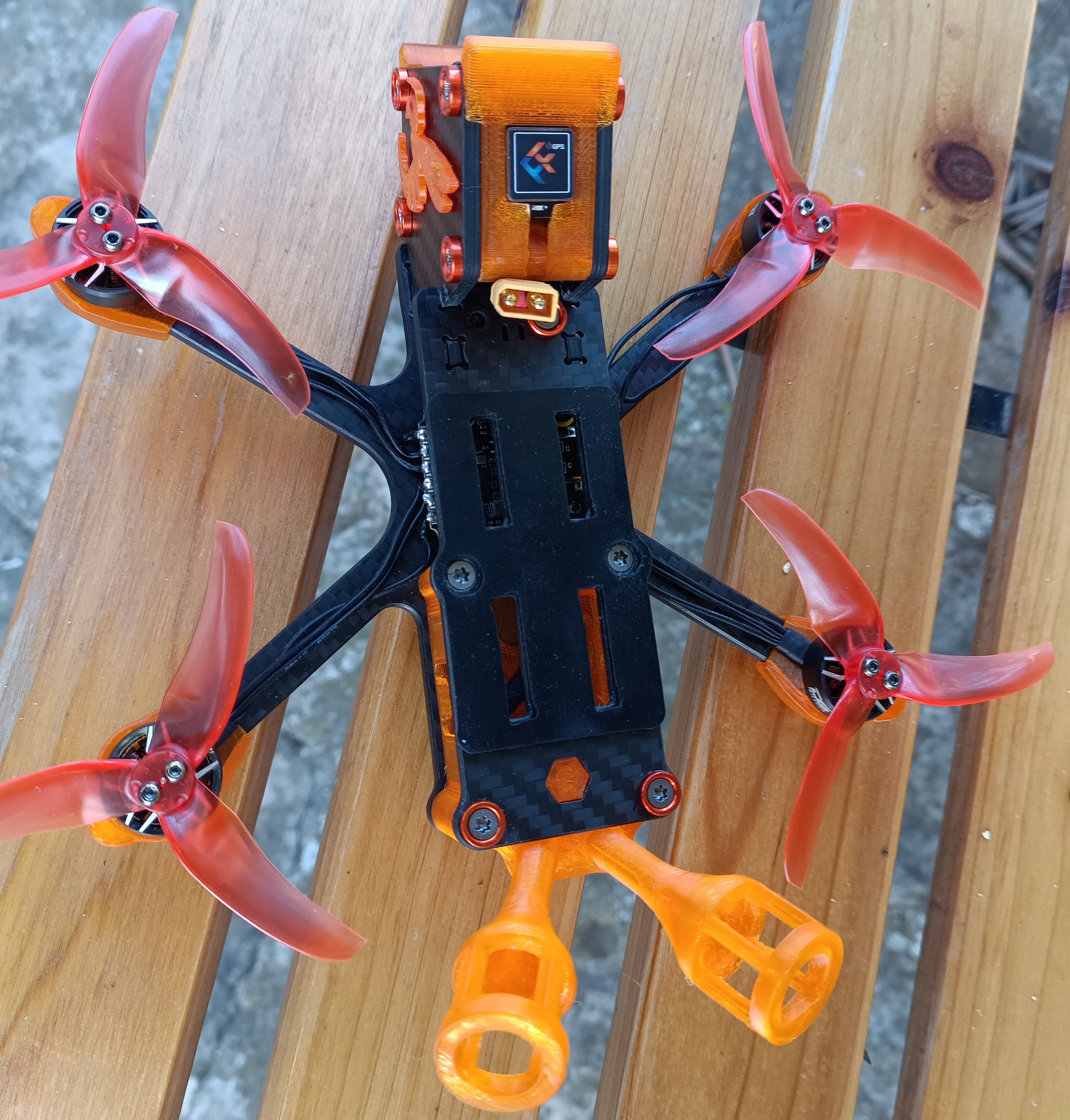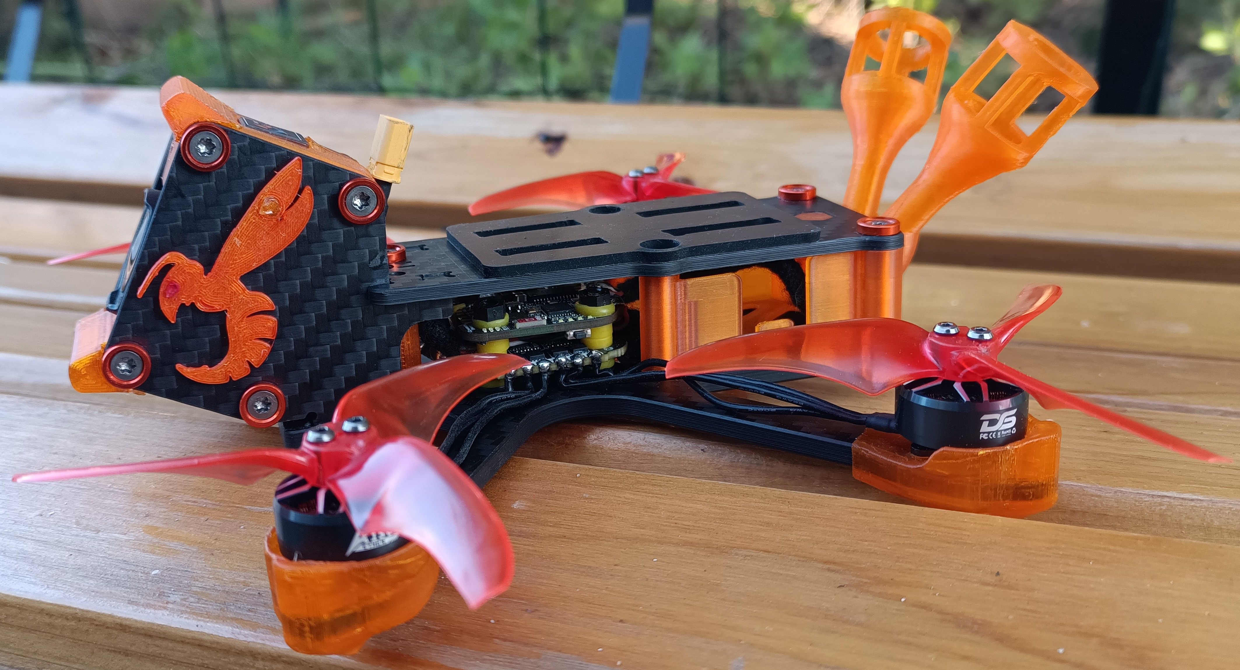 Ptitloup Posté(e) il y a 3 heures Signaler Posté(e) il y a 3 heures Topic Attachments Je vous présente mon petit dernier, un 3,5". Pas encore testé car O4 pro en panne pour le moment. A force de changer le O4 de drone, le cable coaxial a cassé. En essayant de le remplacé, il semblerait que le câble avait une malformation et j'ai cassé le connecteur sur la caméra, commandé mais pas encore arrivé. Moins 1 pour que je valide que ce drone est maudit Frame en unibody avec une bottom de 4mm, une top plate de 2.5mm et des cams plates de 3mm. Oui les cam plates sont épaisses, tout ça pour mettre un soft mount à l'intérieur car j'ai 2 pas de vis caméra qui ne fonctionnent plus. Il est équipé de la Stack Speedybee F405 mini, mis à jour, flashé avec Bluejay et paramétré, tout fonctionne bien de ce coté là, même si la stack est intérieurement protégée, j'ai mis un condo intégré au TPU avant. J'ai intégré le GPS ainsi que le GPS Mate au dessus de la caméra, raison pour laquelle les cam plates sont assez hautes. Un bouton traverse les cam plates pour activer le GPS MATE (dans l'aile du frelon). J'ai refais les portes antennes et j'ai pris les mêmes angles que le Jeno et bizarrement, mon imprimante n'arrive pas à me l'imprimer parfaitement. toujours un petit défaut mais très minime. Caméra fixe à 25°, c'est mon angle idéal, moins j'ai la gerbe et plus ça me plait pas et l’atterrissage est moins facile. J'ai prévu 2 encoche pour mettre un rilsan sur la pigtail. Je n'ai pas visé le drone parfait, C'est un gros bébé (un peu trop)) de 324 grammes prêt à volet (complet avec LIPO), j'espère que les moteurs vont suivre, pas sûr... POIDS : 237 grammes Liste des composants Frame Little Hornet 68 € FC Speedybee F405 20x20 Mini 56 € ESCs 4 x Stack Moteurs 4 x Moteur DeepSpace Aether 1505 4000Kv 60 € Jeu d'hélices 2 x Emax Avan 3528 8 € Caméra FPV DJI O4 Air unit pro Émetteur vidéo DJI O4 Air unit pro LiPo Ovonic 80C 4S 650mah 8 € Prix total : 200 € 2 2