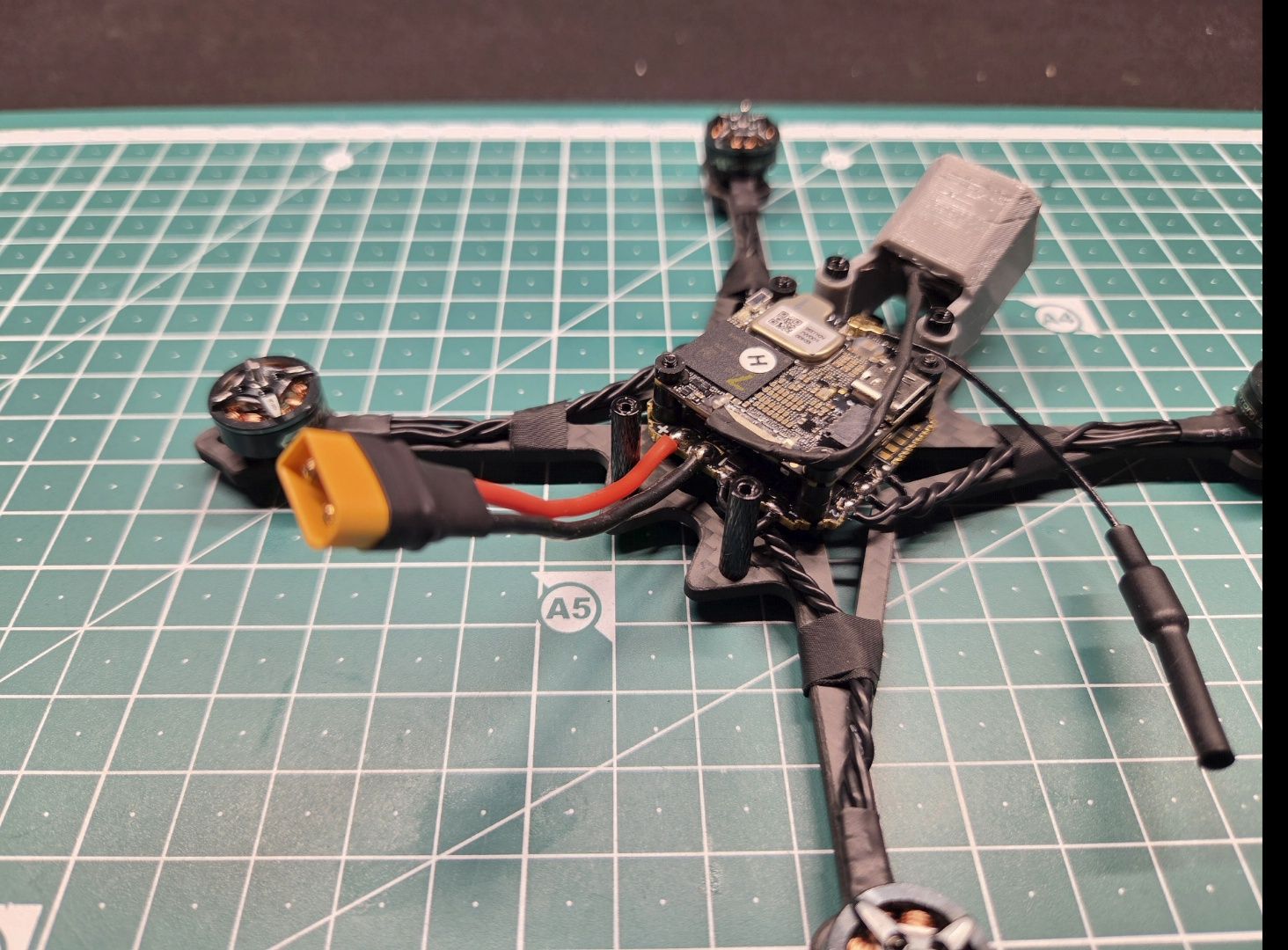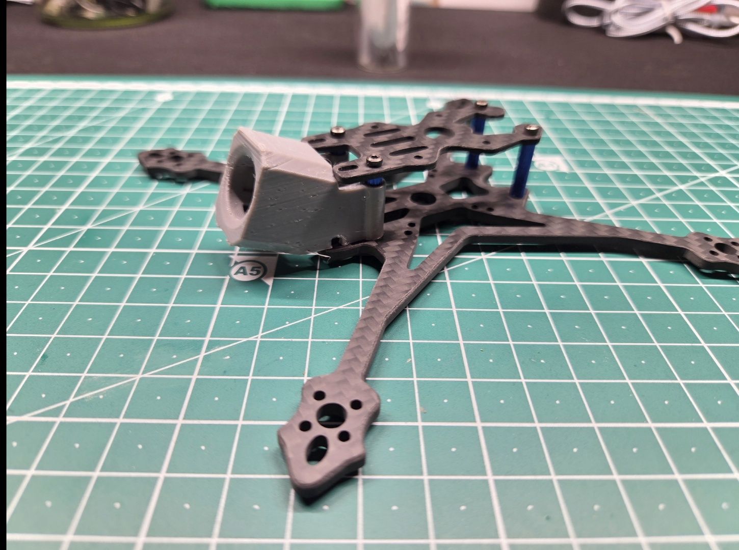 Tooks Posté(e) il y a 2 heures Signaler Posté(e) il y a 2 heures (modifié) Topic Attachments Yes l'équipe, Une frame qui traînait dans mon tiroir depuis longtemps. Avec le O3 lens mod et une caméra mount inspirer du Kayoumini, je me suis dit il y a moyen de faire un truc. Les hélices 3.5 ne rentre pas, c'est dommage mais vu que c'est un build assez léger ça devrait quand même bien voler en 3 pouces. La frame coûte aux alentours de 12 € et la bottom seule 5 €. Vraiment pas cher pour ceux qui aiment les petits drones. Pas encore eu le temps de voler avec mais je vous tiendrai au courant. Liste des composants Frame Crux35 12 € FC JHEMCU 722 AIO 40A 40 € ESCs 1 x AIO Moteurs 4 x T-Motor 1204 6500kv 48 € Jeu d'hélices 1 x Gemfan Hurricane 3020-3 2 € Caméra FPV DJI O4 100 € Prix total : 202 € Modifié (le) il y a 44 minutes par Tooks 1 1