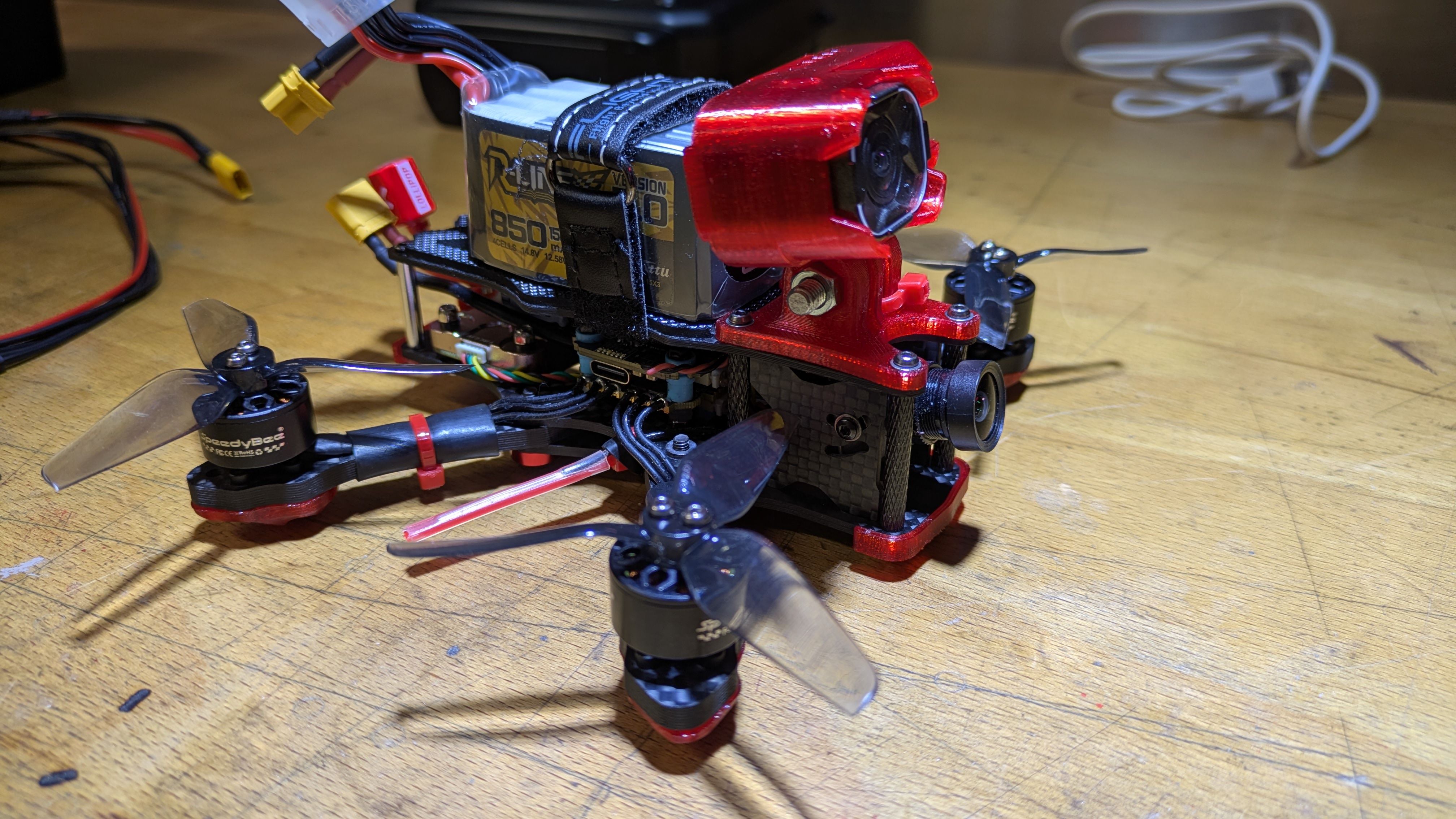 longue-vue Posté(e) il y a 1 heure Signaler Posté(e) il y a 1 heure Topic Attachments Voici mon premier drone, assemblé avec mes 10 doigts. Des heures et des heures à me documenter pour savoir quoi acheter et surtout comment le faire fonctionner Il vole bien mieux que moi, c'est déjà ça! POIDS : 298 grammes Liste des composants Frame Clone Apex 3" 25 € FC Mamba F405 mini 45 € ESCs 1 x Reactor 44A 45 € Moteurs 4 x Speedybee 1507 3600kv 60 € Jeu d'hélices 1 x Qprop 3x3x2,5 10 € Caméra FPV Ratel Pro 35 € Émetteur vidéo Speedybee TX800 30 € Antenne vTx Foxeer lollipop V4 12 € Récepteur radio Frsky R-XSR 25 € LiPo Tattu R-line 4s 850mAh 20 € Prix total : 307 € 1