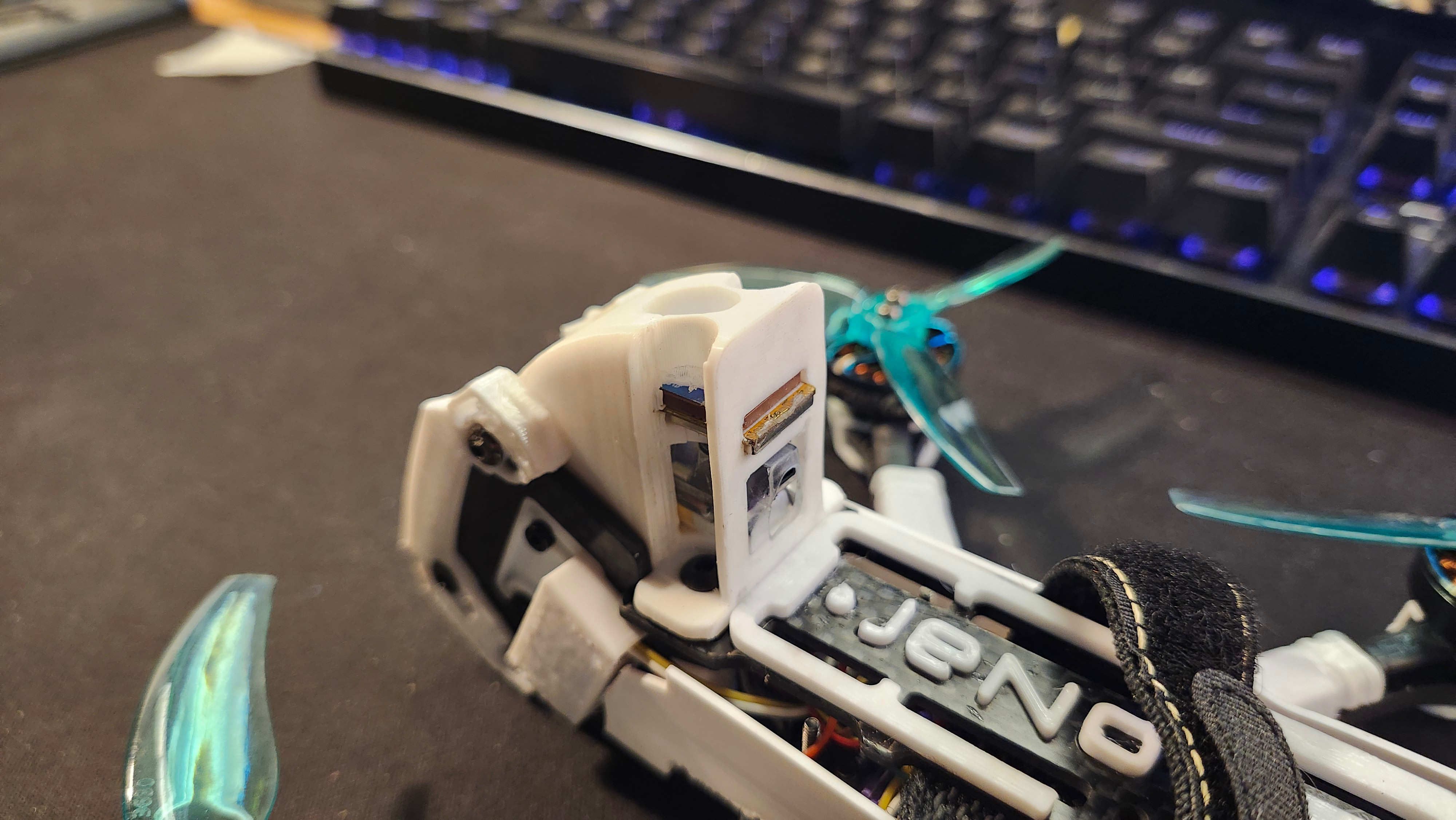 robert Posté(e) Décembre 27, 2025 Signaler Posté(e) Décembre 27, 2025 (modifié) Topic Attachments Encore un JENO 3.5 , cette fois je voulais du cinematic donc en O4 pour une meilleur qualité d image et des moteurs plus smoth , j ai aussi rallongè les supports d'antennes. j ai adapté mes impression pour le O4 pour les protections laterales https://www.printables.com/model/1529824-protection-laterales-jeno-35-o4pro et la protecton de batterie pour y mettre un Super buzzer GEPRC https://www.printables.com/model/1529812-protection-lipo-jeno-35-o4pro la protection de camera pour avoir la possibilite d y mettre un verre de protection de montre 26x26 : https://www.printables.com/model/1529825-protection-o4pro-pour-jeno-35 le verre : https://www.aliexpress.com/item/1005008301151943.html?spm=a2g0o.order_list.order_list_main.185.21ef1802LGbQyV le buzzer : https://geprc.com/product/geprc-super-buzzer/ un gps speedybee a 31$ (https://fr.aliexpress.com/item/1005010578521959.html) tout est fonctionnel le GPS capte tres bien malgres le tpu , j ai fait une ouverture sur le dessus pour cela (capture d écran fait a l interieur ) 345g avec batterie 950Mah 330 g avec batterie de 850 Mah 243 g à vide a venir les temp de vol par batterie et video Liste des composants Frame JENO 3.5 46 € FC speedybee f405 56 € ESCs https://www.speedybee.com/speedybee-f405-aio-40a-bluejay-25-5x25-5-3-6s-flight-controller/ Moteurs 4 x T-MOTOR F2004 3000KV 4S 116 € Jeu d'hélices 1 x 6 ensembles gemfan 3630 19 € Caméra FPV air unit O4 229 € Émetteur vidéo air unit O4 Récepteur radio dji fpv2 LiPo GNB 4SLipo Battery 850mAh 120C 23 € Prix total : 489 € Modifié (le) Décembre 29, 2025 par robert modification de prix 1