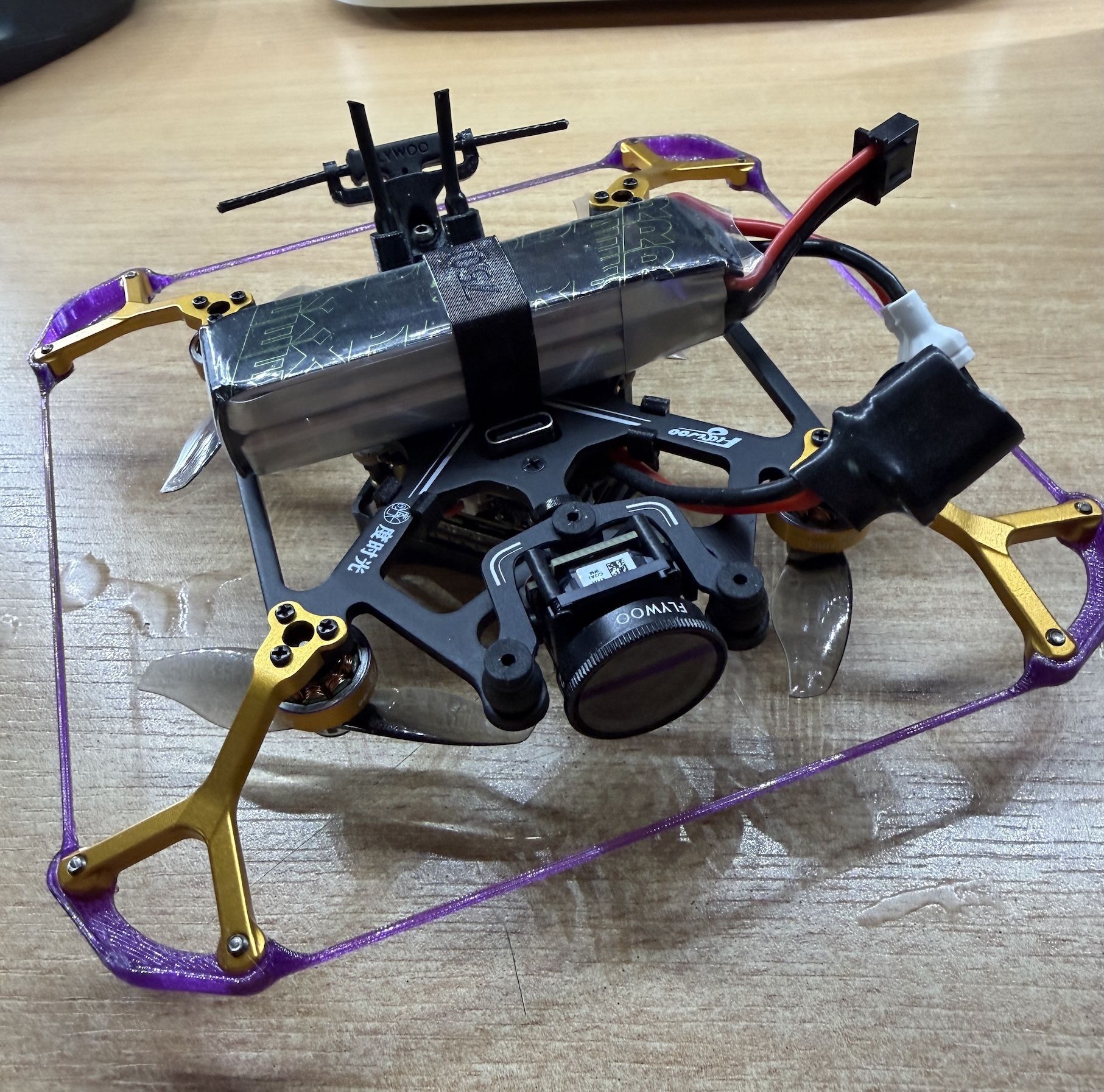 edf84 Posté(e) il y a 13 heures Signaler Posté(e) il y a 13 heures Je me sépare de mon petit Drone Flywoo - Flytimes 85 version 2S O3 Lite - ELRS 2.4G J'ai acheté ce drone sans VTX, mais je lui ai monté un DJI O3 en version Naked avec le kit Flywoo (donc sans son boitier d'origine pour alléger au maximum l'ensemble VTX et caméra). Vendu avec 4 batteries Flywoo LiHV 2S 750 mAh 80c. Plus tout un tas de pièces de rechange il suffit d'y connecter une radio ELRS 2,4G pour voler. tout est neuf et n'a jamais volé. J'ai juste chargé les accus et allumé le drone pour testé le fonctionnement des moteurs et de l'ensemble vidéo. Prix : 250 euro