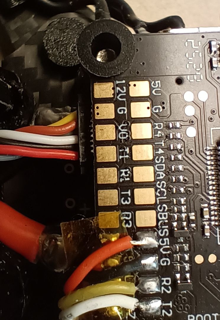 SBR Posté(e) il y a 1 heure Signaler Posté(e) il y a 1 heure hello, j ai besoin d'un peu d'aide et de conseils pour la connexion de mon 04 sur ma FC axis f405 f722 : âpres plusieurs essai de connexion de mon 04 via le cable 3/1 dji sur le connecteur 7pins je n ai pas pu binder mon o4 avec mes n3 : j ai donc cru a une panne du o4 après vérification il s avère qu'il fonctionne correctement ailleurs . j ai donc vérifié la sortie 12 v sur le connecteur avec mon multimètre : résultat une tension résiduel de 1.8volts. j'ai retourner la fc et vérifié la tension sur les bornes a souder résultat: 12 volts avez vous une idee du pourquoi ? vu que, apparemment le connecteur a un soucis je souhaiterai avoir confirmation que je peux souder les fils de mon o4 sur les bornes a souder ...