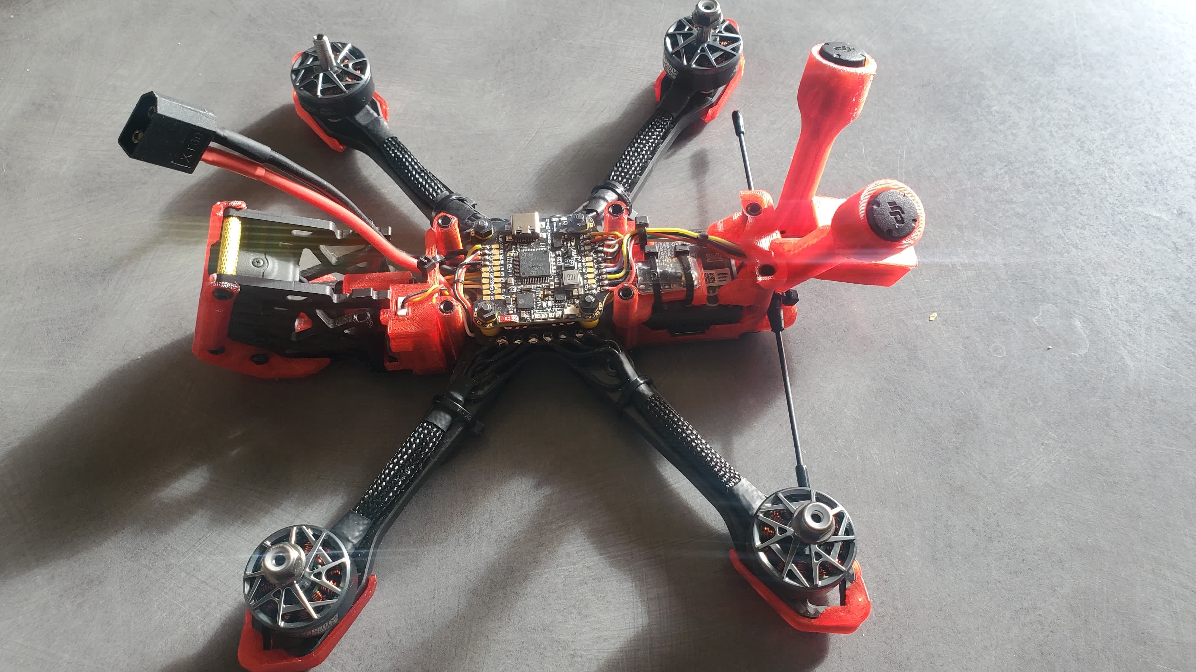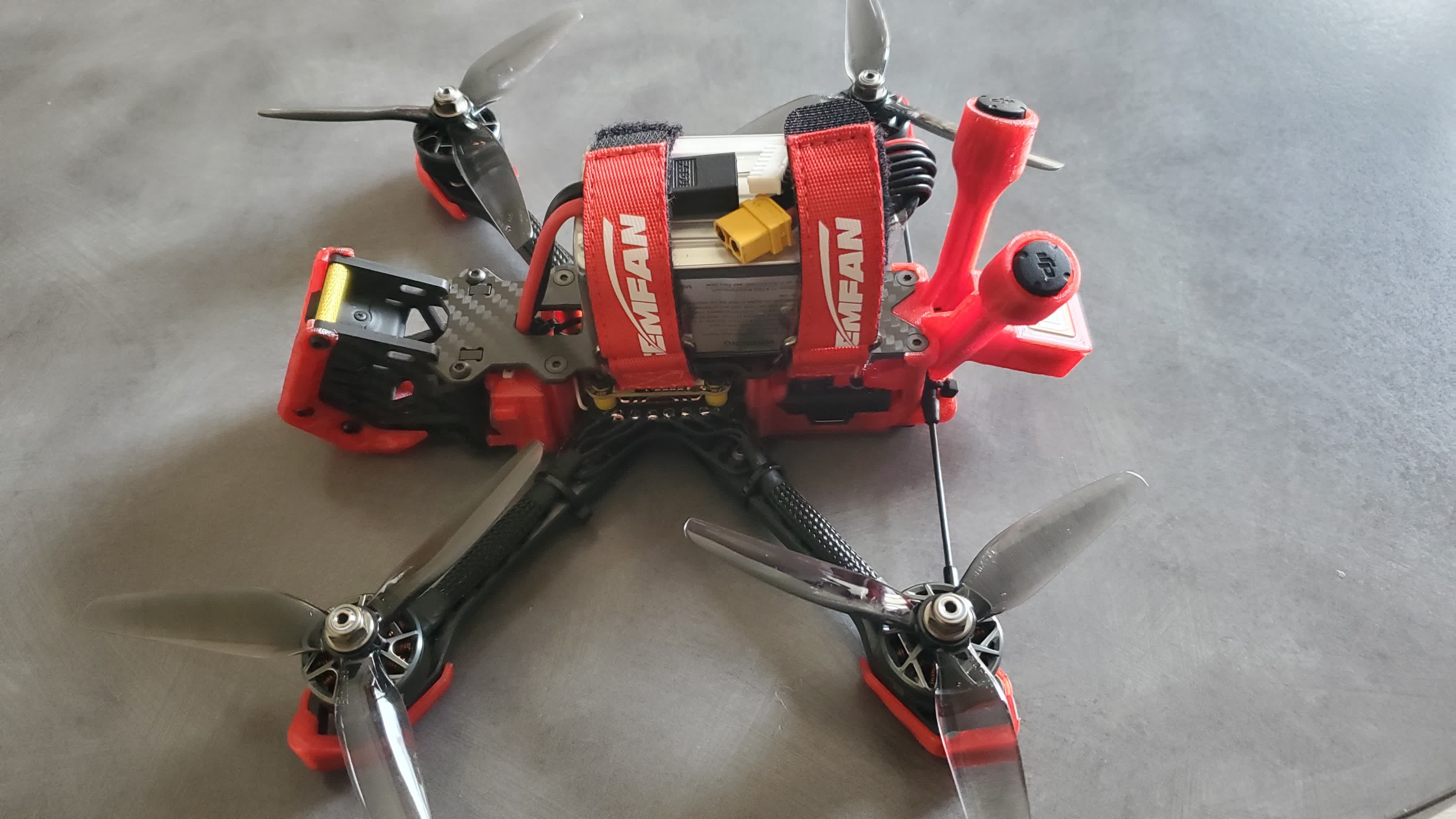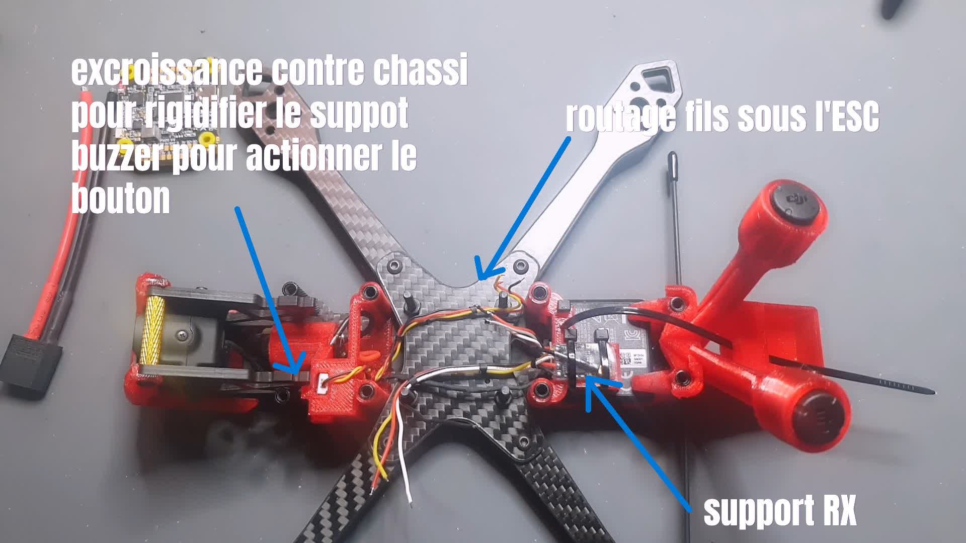 herve65 Posté(e) il y a 1 heure Signaler Posté(e) il y a 1 heure Topic Attachments je suis très heureux de vous présenté ma première réalisation et pourtant c'était pas gagné ... (jamais piloter de fpv ,ni soudure a l'étain ) donc SYMU a font " plus de 500 h" (tryfpv) et entrainement soudure . Le premier "envol" était samedi dernier entouré de mais enfants et petit enfants et quelle bonheur de le voir décollé et moi de pouvoir le piloter sans encombre . Merci a vous tous sur se forum , j'ai toujours u des réponses a mais question. Pour info la frame a été découpé chez cnc27 et très satisfais , et pour les tpu que j'ai modifier en partie sont les officiel du jeno et de @Bard sauf le buzzer condo que j'ai dessiné. POIDS : 491 grammes Liste des composants Frame jeno 5 75 € FC Stack SpeedyBee F405 V4 BLS 60A ICM42688P 86 € ESCs 4 x Stack F405 V4 BLS 60A 30x30 - SpeedyBee Moteurs 4 x Moteur F40 PRO V 1950KV - T-Motor 104 € Jeu d'hélices 1 x Hélices Ethix S5 tripales 5040 (5x4x3) shaft M5 3 € Caméra FPV DJI O4 Air Unit Pro 249 € Récepteur radio Récepteur Team BlackSheep Crossfire Nano RX Pro TBS 39 € LiPo Batterie LiPo Tattu R-Line V5.0 6S 1550mAh 150C 42 € Prix total : 598 € 1