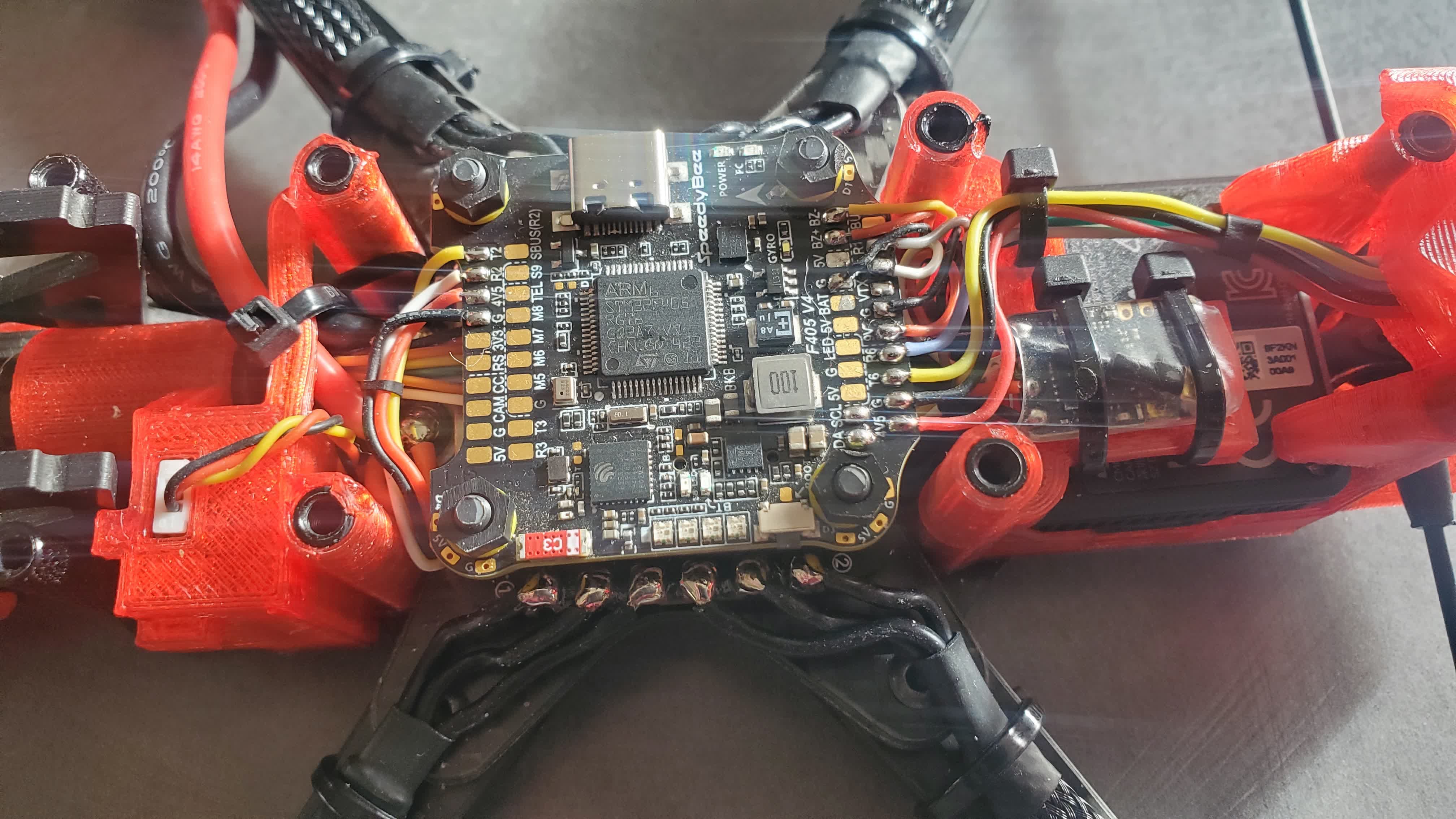 Isa dronic Posté(e) il y a 1 heure Signaler Posté(e) il y a 1 heure Salut, très clean comme build on dirait pas que c'est ton premier entre la gaine le serflex etc ! Hâte de voir le DVR !! Bon maiden . Seul truc que je peux te dire s'est que je suis plutôt réfractaire sur la rallonge en fils souple du condo j'ai fait cramer des esc comme ça l'idéal serait de souder directement ton condo sur le pad d'alimentation , plus s'est proche mieux c'est . Alors oui il y en a qui vont dire que ça va engendrer des vibrations bof ... petit info tes tpu de bras sont a l'envers .