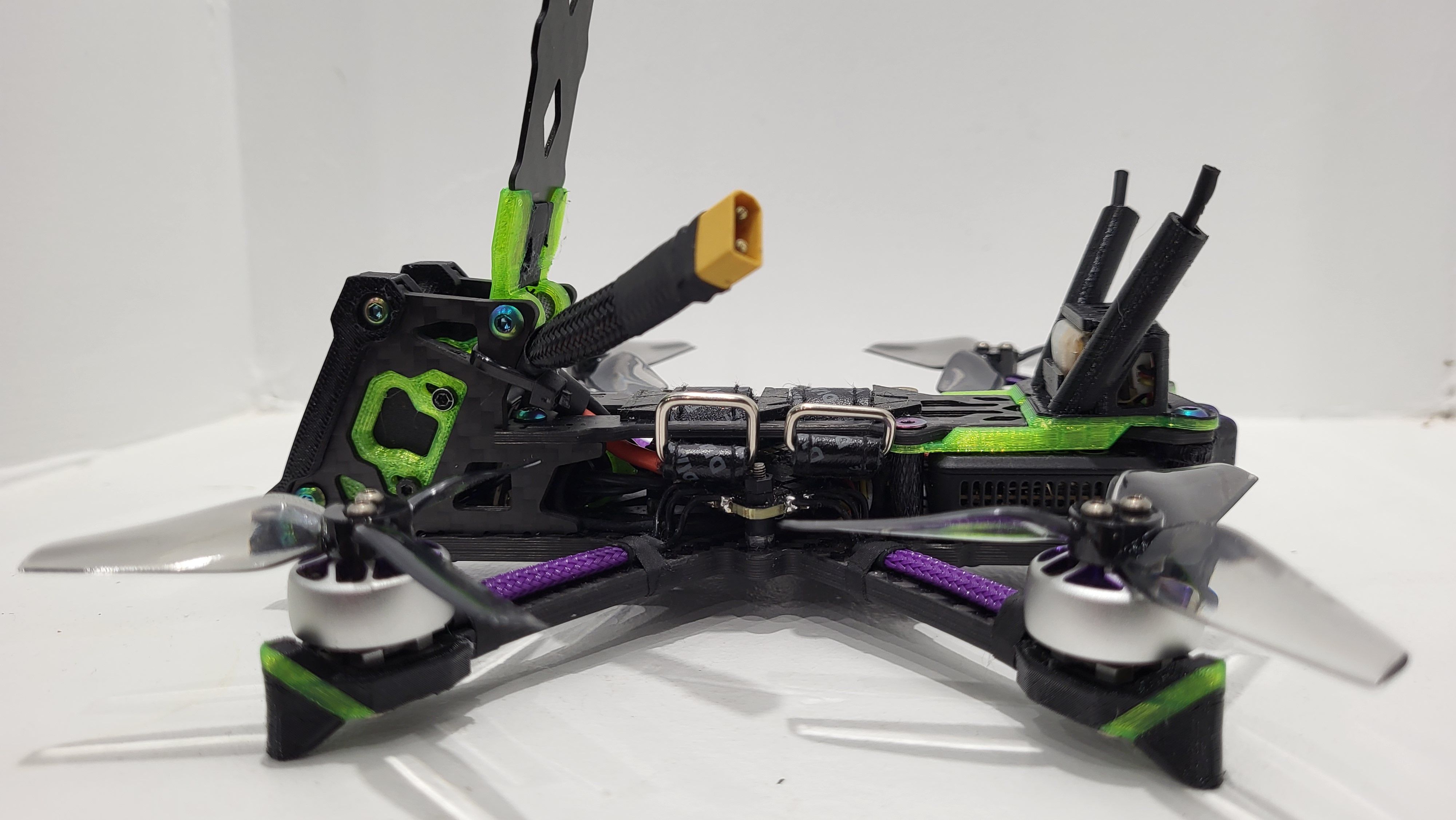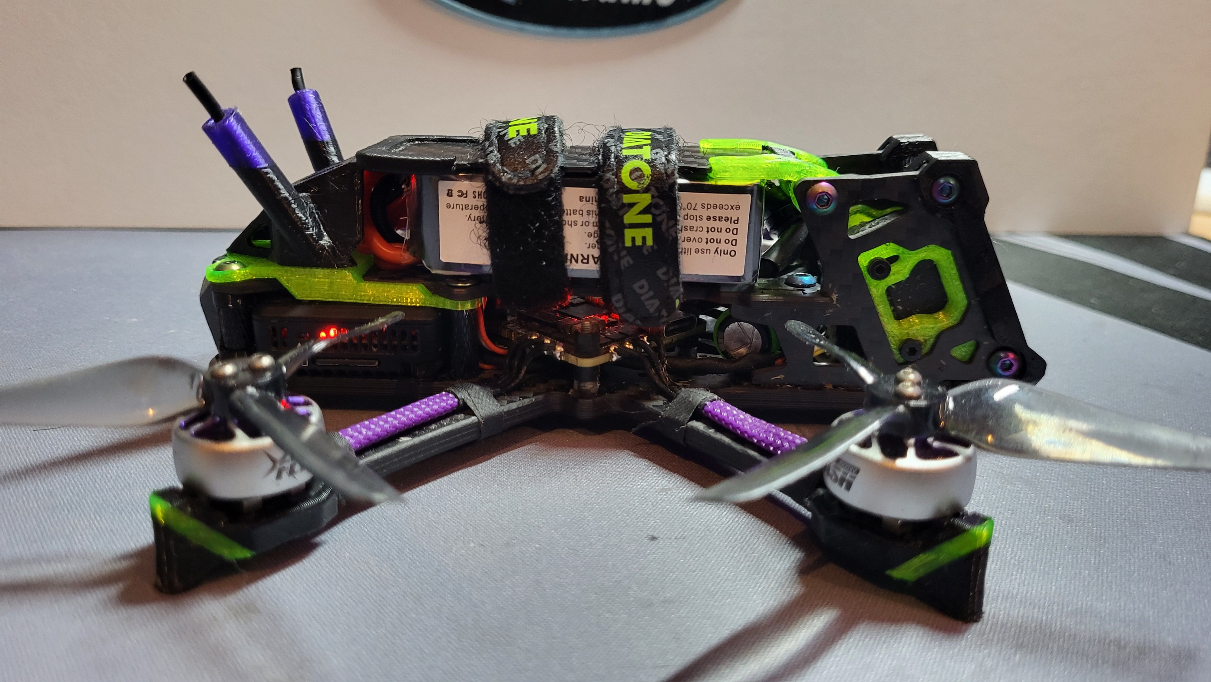 nox Posté(e) il y a 2 heures Signaler Posté(e) il y a 2 heures (modifié) Topic Attachments salut ! Bon bah ,voila ma dernière modélisation : j'ai pris l'habitude de leur donner un petit nom voici le : TK les infos complètes sont a check sur la page printables . Ca faisait longtemps que j'avais dans l'idée de faire une frame ,ou la lipo est intégrée et protégé dans la frame !!! a vrai dire j'ai vite laisser tomber cette idéé ,afin de rester avec un design qui ne pique pas les yeux ...et avec la sortie du 04 pro et ça caméra au format généreux ! j'ai profiter de la plus grande taille des cam plates pour me lancer ! Je suis rester sur un format 3 pouce ! choix orienté en fonction de la taille des lipo , un 3.5 pouce aurai été plus simple pour gagner de la place ! mais je voulais aussi utiliser le matos que j'ai déjà . donc j'ai repris le matos de mon jeno 3 ! avec l'objectif de rester le plus compact possible et de limiter le poids au max , sans pour autant sacrifier en solidité ! L'idée est une petite machine avec laquelle on peut ce faire plaisir sans trop ce poser de questions ! ... je ne l'ai pas penser pour du bando ! mais j'ai chercher a faire une machine solide qui protège la lipo et des tpu léger ,mais tout de mème assez protecteur ! et trouver une place pour le buzzer ... tout en restant sur un design qui me plait ! ... la tache n'as pas éte la plus facile ! je suis parti sur une base wide x ...un bus de 15 mm car c'est une taille d'entretoise facile a trouver ! 22mm entre cam plate et une lipo 4s 550 mah pour déterminer le volume dans la frame . -ce projet as bien occupé mon temps libre .... ça n'as pas été simple de ranger les composants dans la frame ! ça c'est jouer a coup de mm ! j'ai vraiment fait au plus compact possible ! le montage a èté un moment pas toujours zen ! Le résultat me convient ! tout est bien ranger , rien ne dépasse ! tous est protéger ... le buzzer est un peu exposer et les tpu de bras je travaille dessus.... globalement le niveau de protection est rassurant ! pour le moment pas de casse ! je n'ai pas fait de session de bourrin pour avoir un avis concret , mais je suis confiant . vivement le beau temps pour voler ! Le comportement de vol est satisfaisant ! je retrouve les même sensation que mon jeno 3 ! l'aio est plus sensibles au bruits , j'ai fait un tune au feeling qui demande a être affiner .. ça , c'est pour plus tard .. Pour le moment je suis satisfait du résultat ! je vais en rester là ! quand ça vole propre et que je n'ai pas les hélices dans le fov : moi content Et pour les motivés : je ne pensais pas le faire , mais j'ai mis les fichiers en partage ! https://www.printables.com/model/1600459-lybell-tk ça reste encore un prototype .... perso je vais pas forcement chercher faire plus , le résultat me convient ...je ne pensais vraiment pas y arriver sur les première phases de modélisation ! le format 3 pouce ne laisse pas beaucoup de marge ! mais au final ...ça passe plus d'info sur la page printables ! j'ai fait au plus simple la page printable , il y a toutes les infos nécessaire ... et tous les fichiers nécessaires . j'espère que le boulot fait sur cette frame ! puisse plaire a certains .... a plus Liste des composants Frame LYBELL TK FC AIO GEP-TAKER G4 35A ESCs 4 x AIO GEP-TAKER G4 35A Moteurs 4 x Moteur Flash 1404 4500kv Jeu d'hélices 4 x HQProp Durable T3x2.5x3 Caméra FPV DJI O4 Air Unit Pro Prix total : 0 € Modifié (le) il y a 2 heures par nox 1